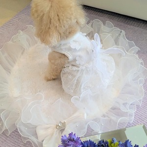 ピュアホワイトのフラワーレース刺繍ドレス 犬服 00702