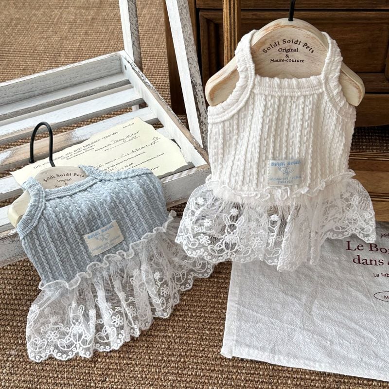ラビット柄レーススカートのニットワンピース 犬服 00753