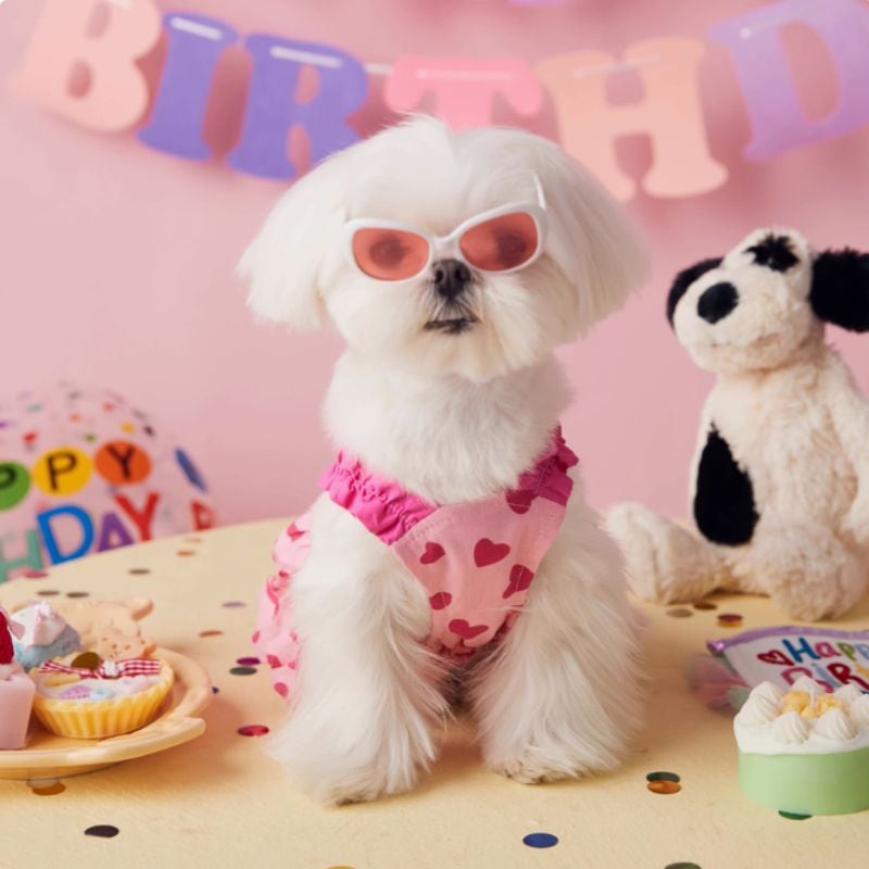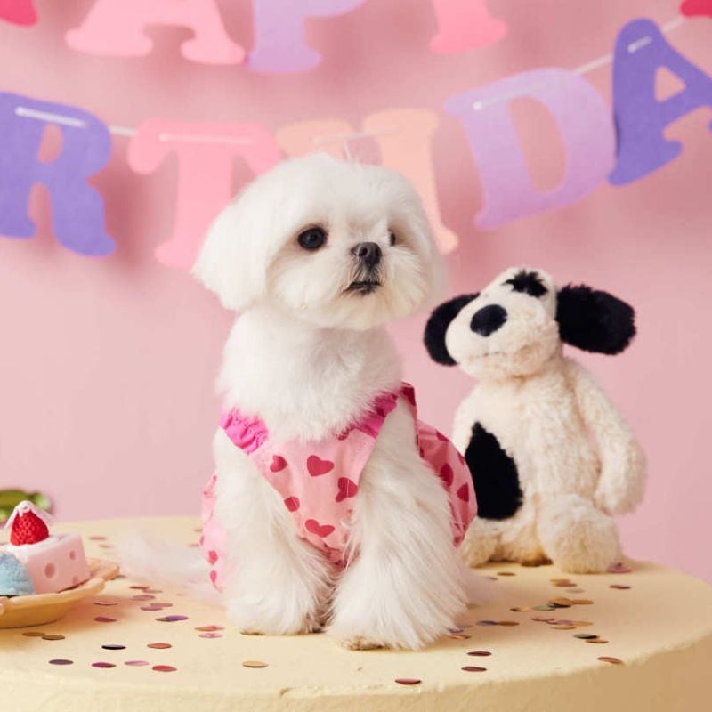 ピンクのハート柄バルーンワンピース 犬服 00707