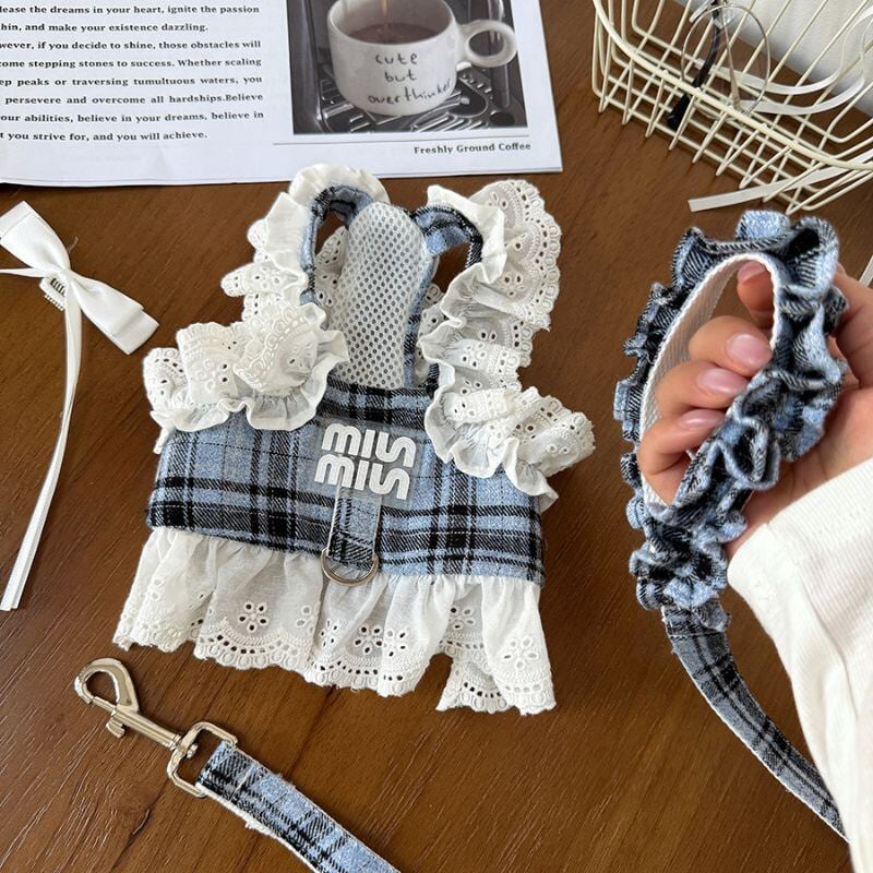 フリルハンドルのリード付きでおしゃれにお出かけできます。