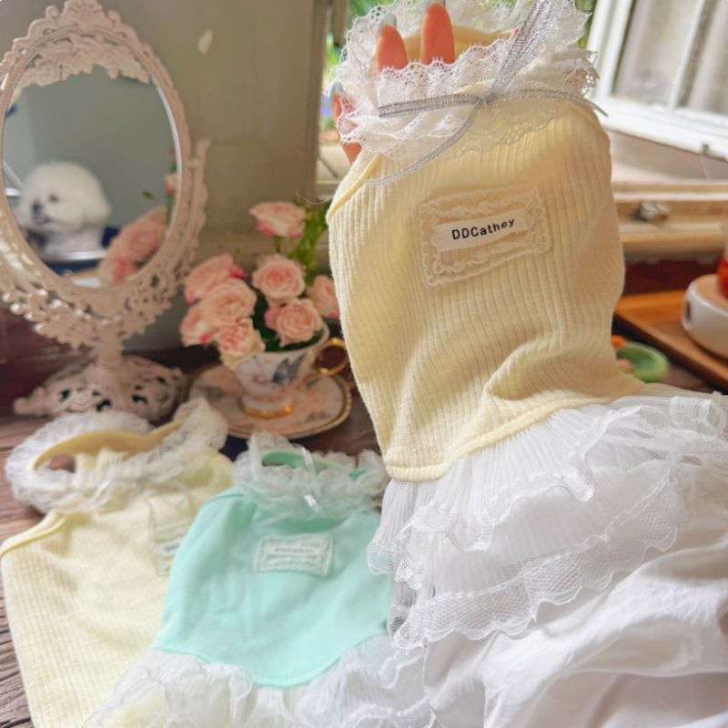 裾はティアードチュールスカラップレースで優美なシルエットに。
