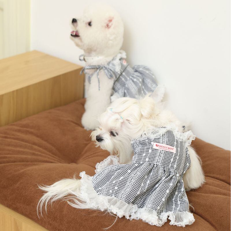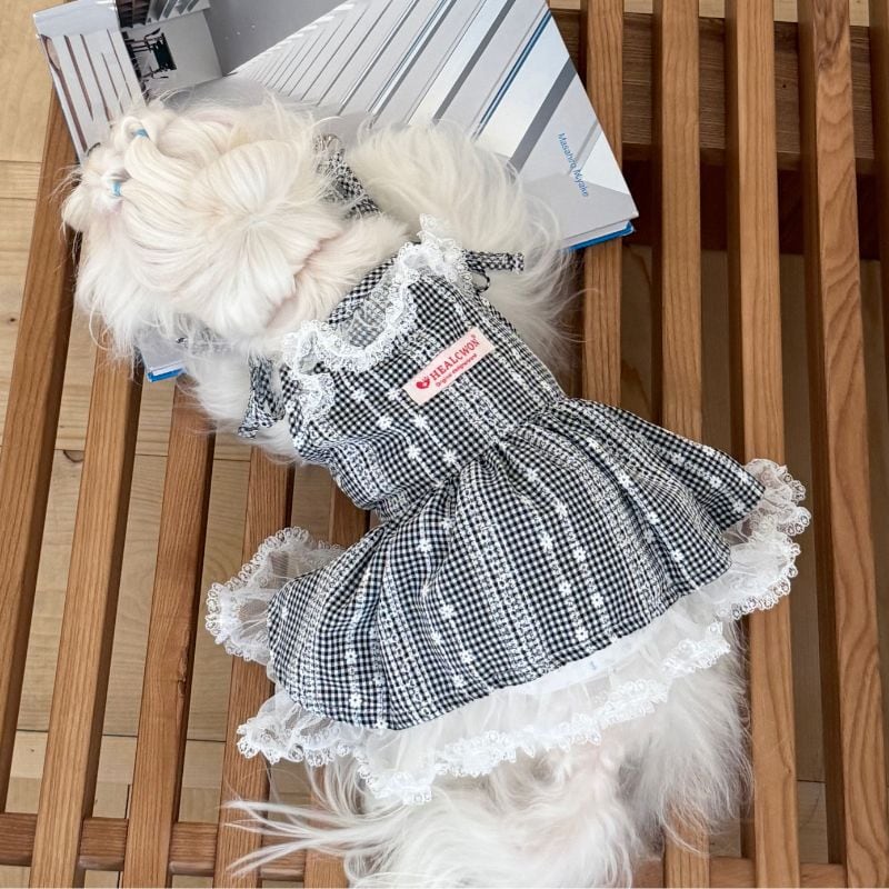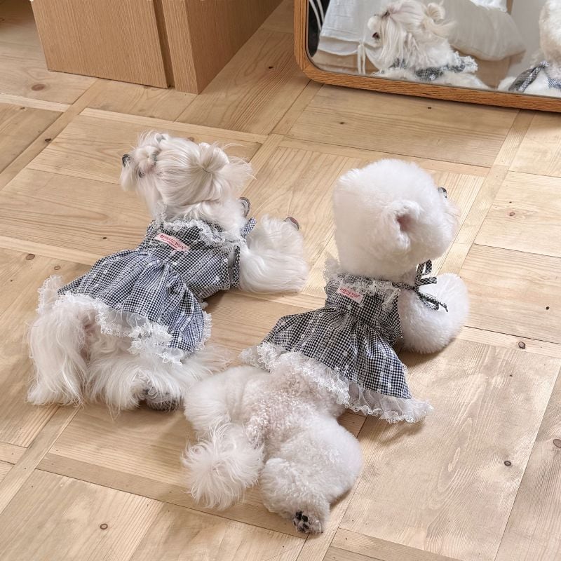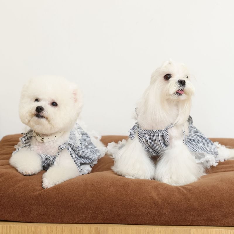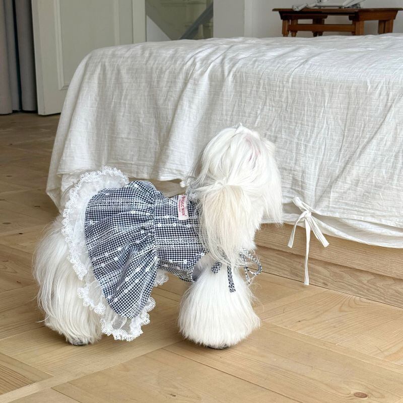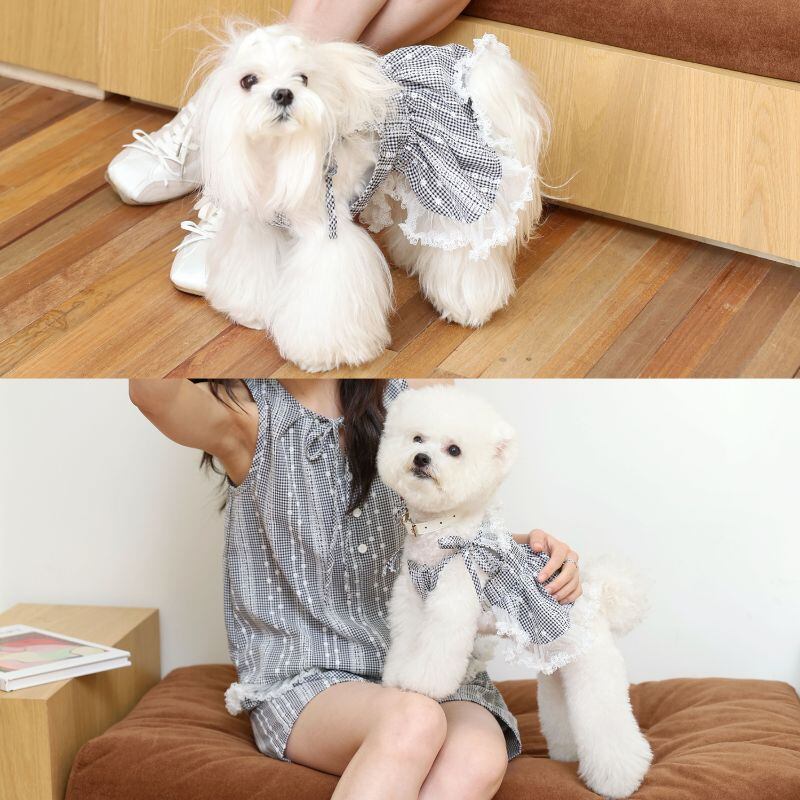 ギンガムチェックのガーリーキャミソールワンピース 犬服 00862