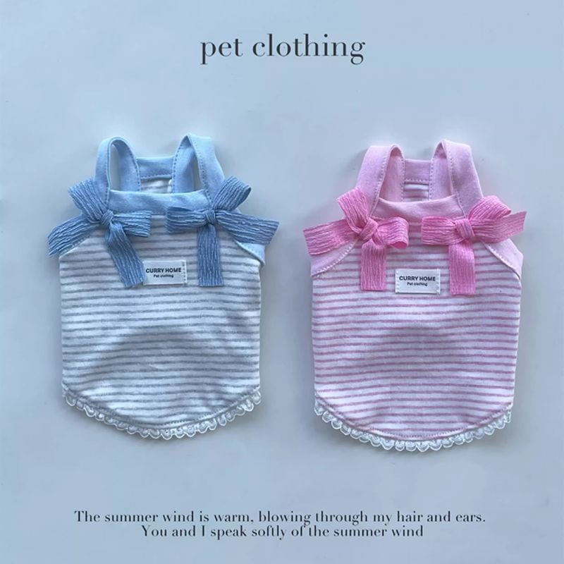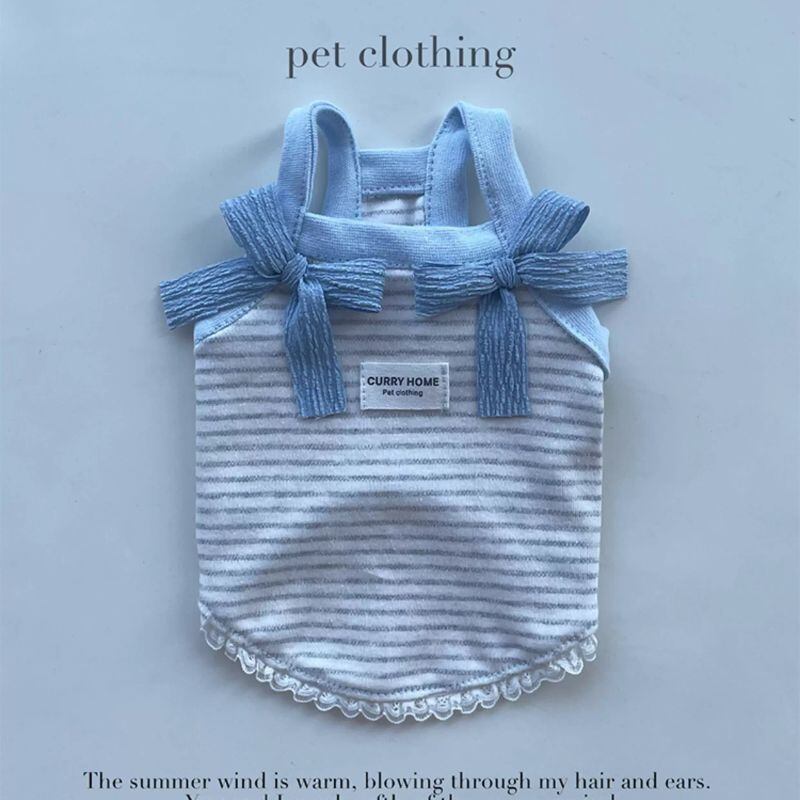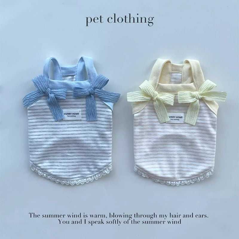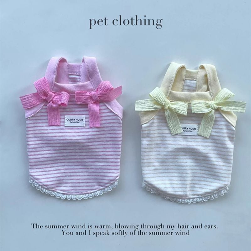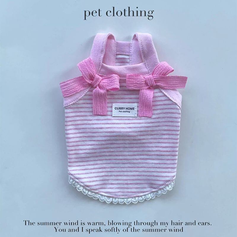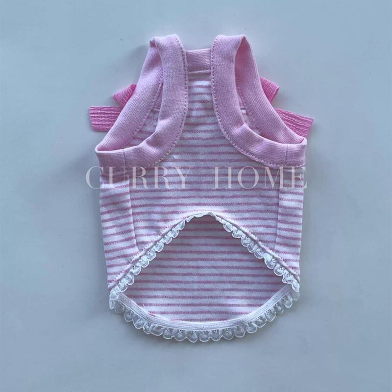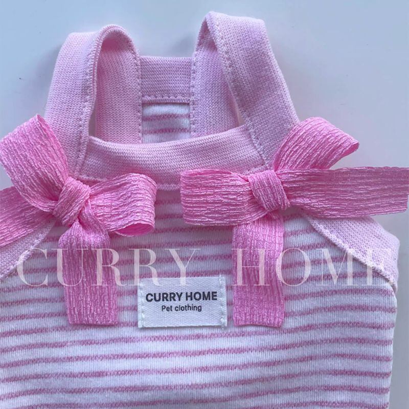 パステルボーダーのショートキャミソール(リボン付) 犬服 00870