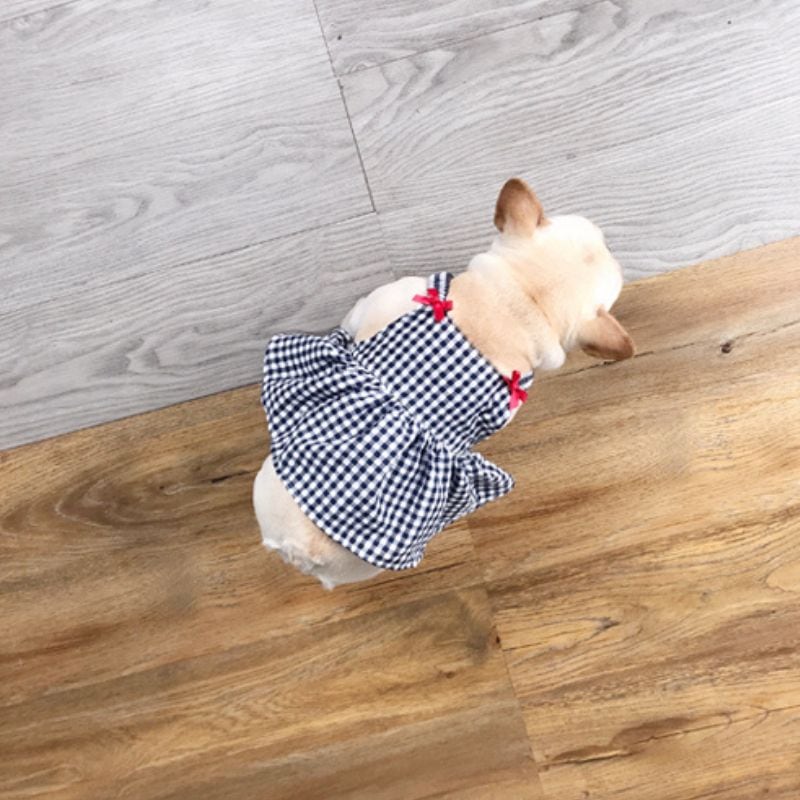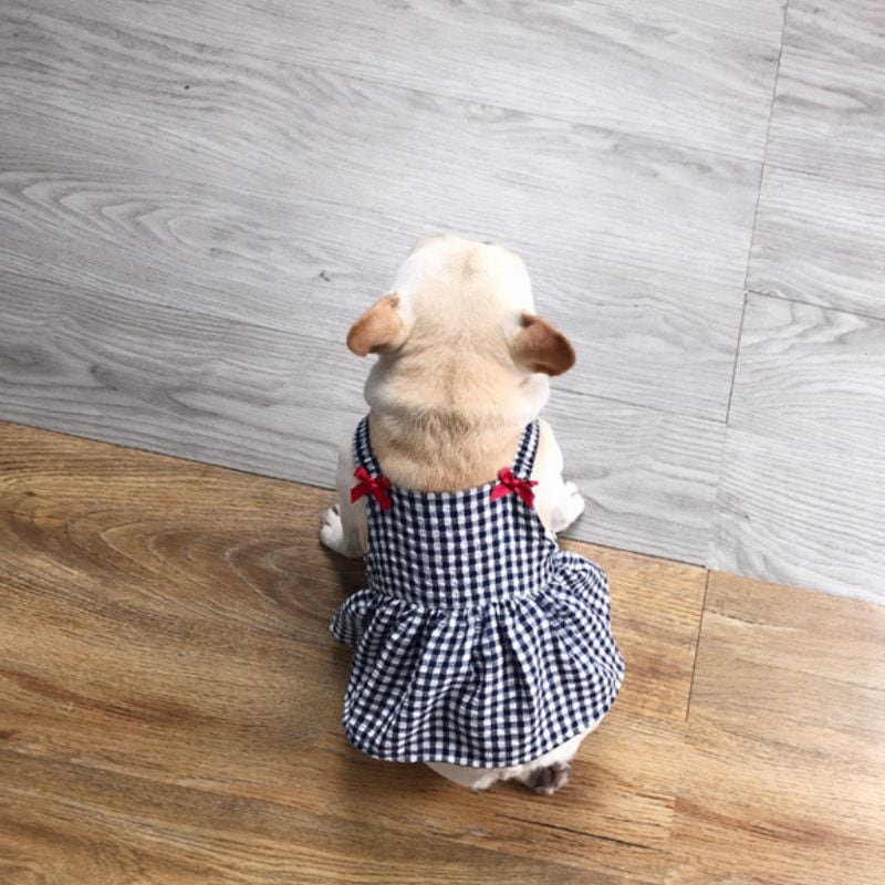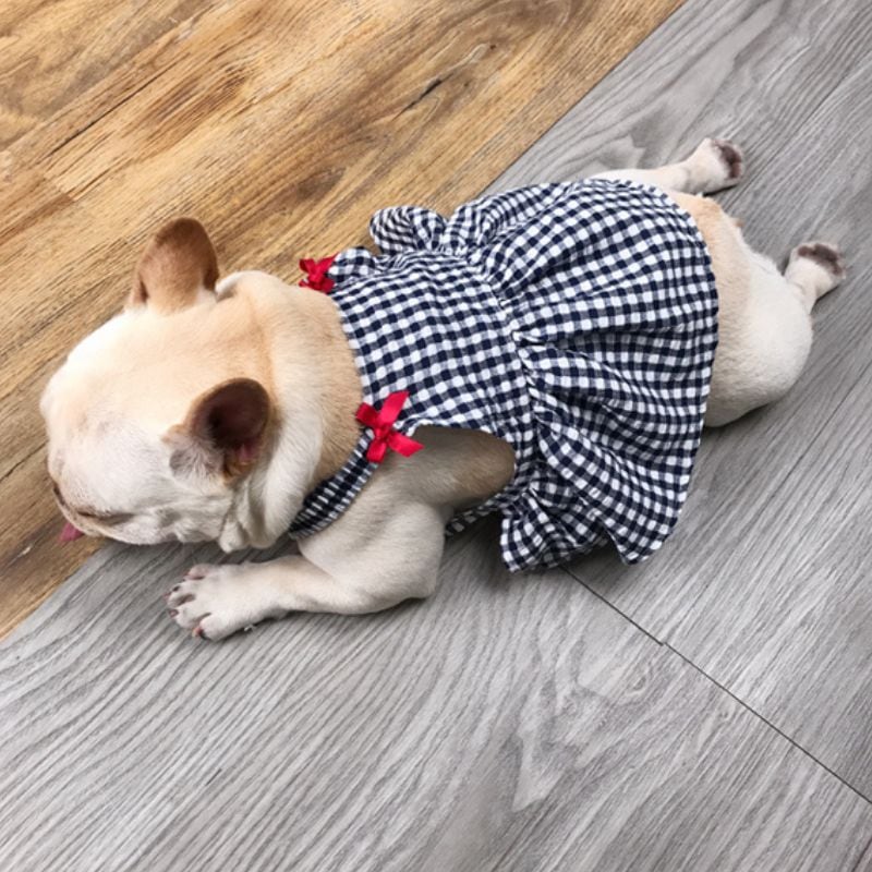 フレンチブルドッグ・パグ用 ギンガムチェックのサロペットスカート 犬服 00875【予約】