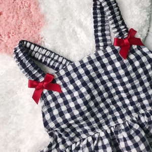 ギンガムチェックが軽やかなペプラムサロペットスカート。