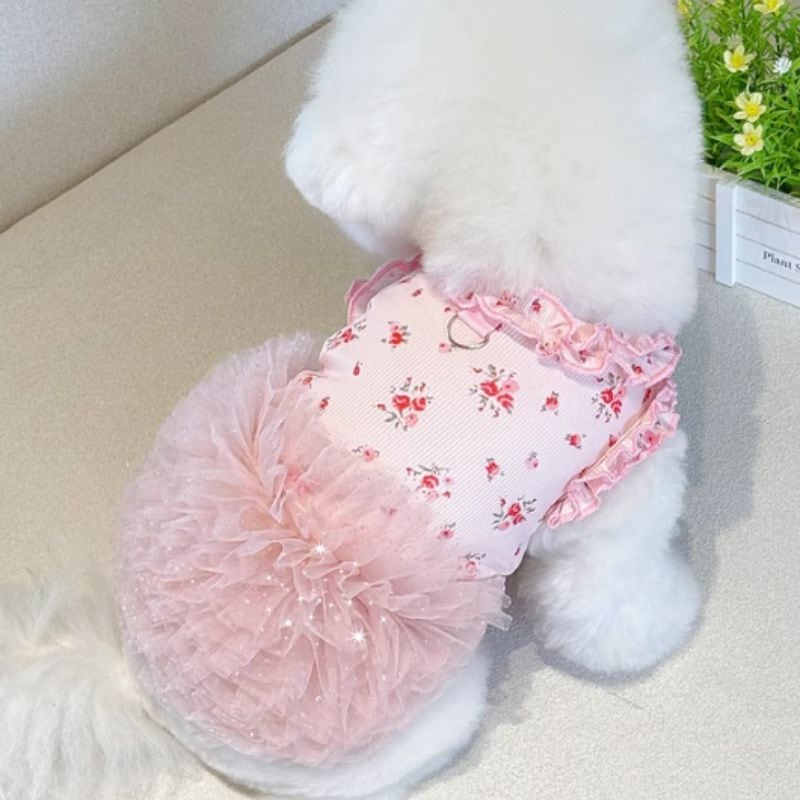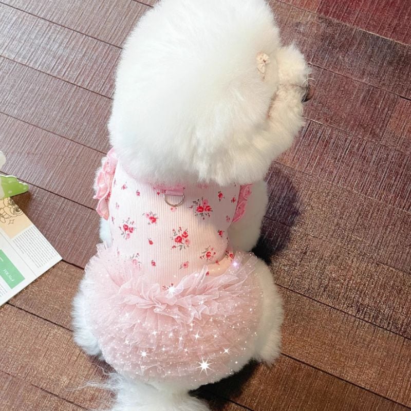 花柄カットソーとチュールスカートのワンピース 犬服 00880