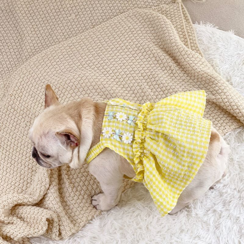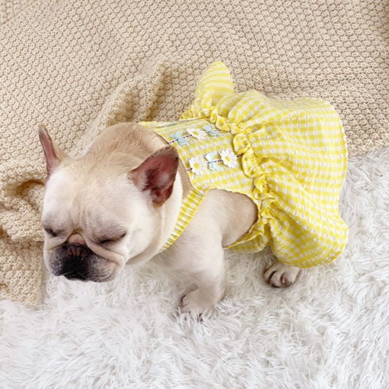 フレンチブルドッグ・パグ用 デイジーモチーフ付サロペットスカート 犬服 00877【予約】