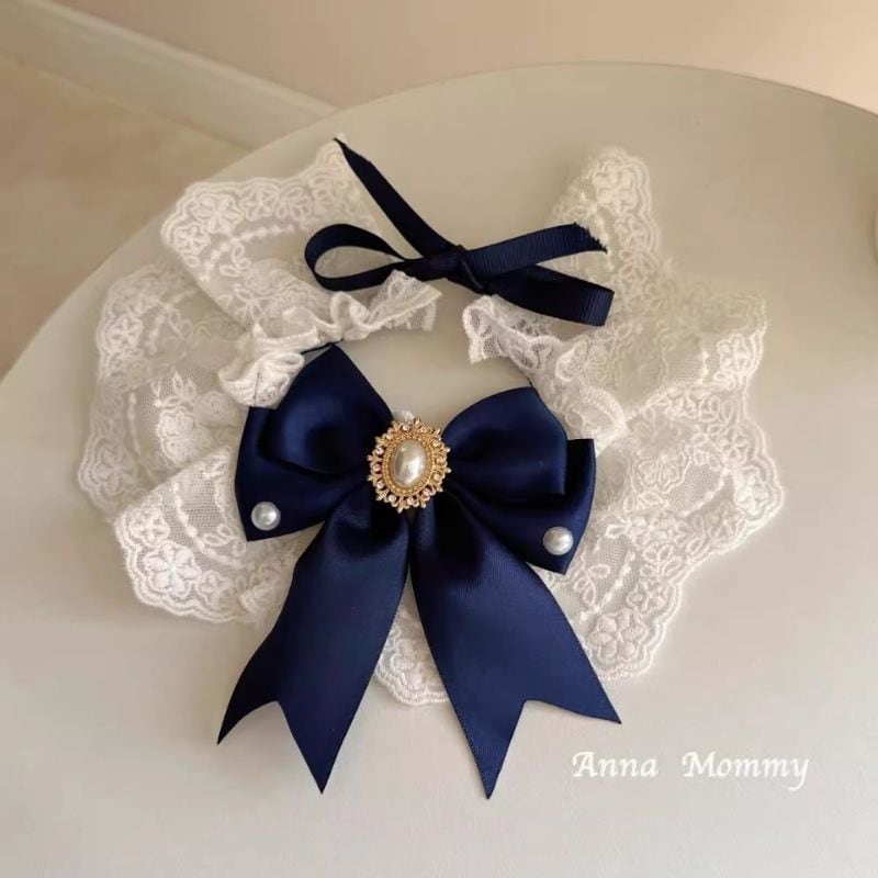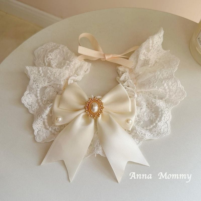チュール刺繍レースの中央に輝くビジュー付きサテンのダブルリボンが存在感を放ち、