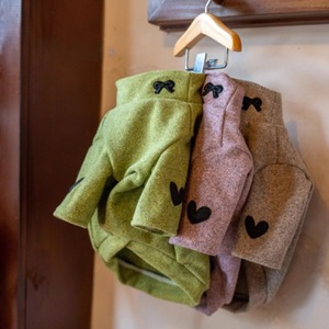 襟のリボンモチーフと両袖のハートモチーフがチャーミングなアクセント。