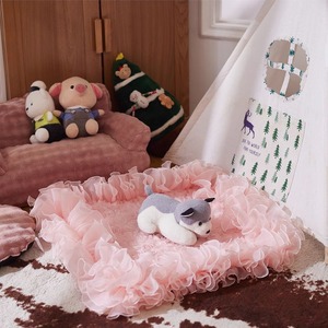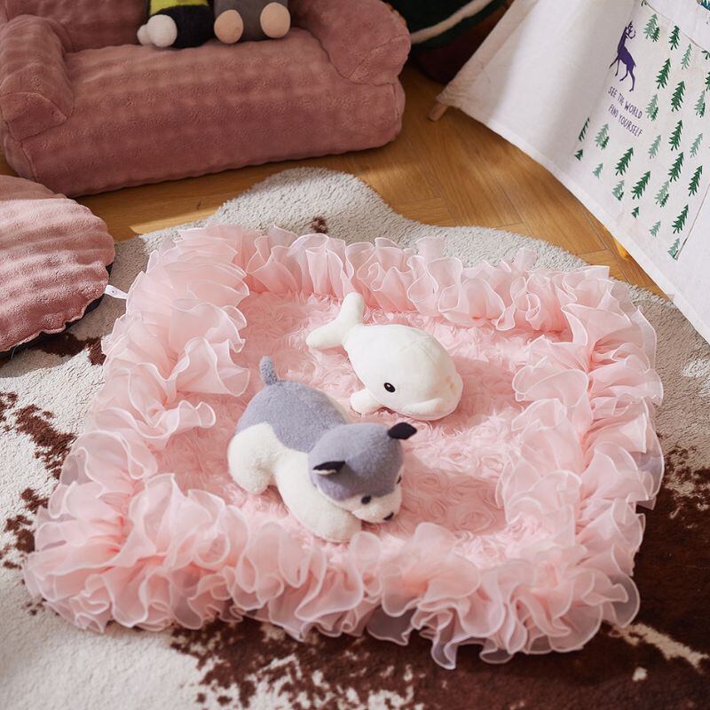 ペット用ピンクフローラルレースのスクエアカフェマット 00918
