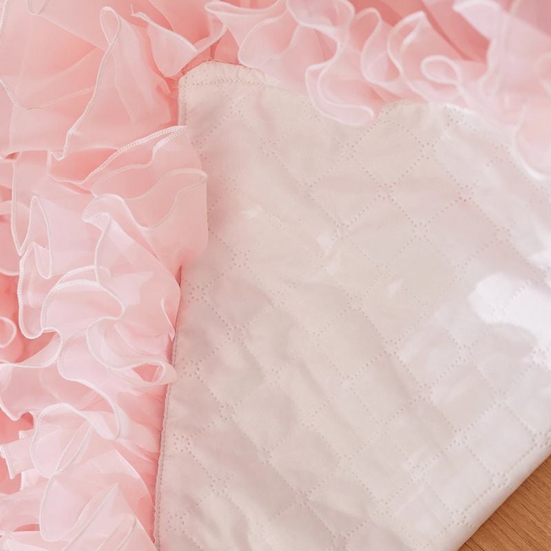 同色の繊細なメロウ仕上げのシフォンを縁に幾重にも重ね、