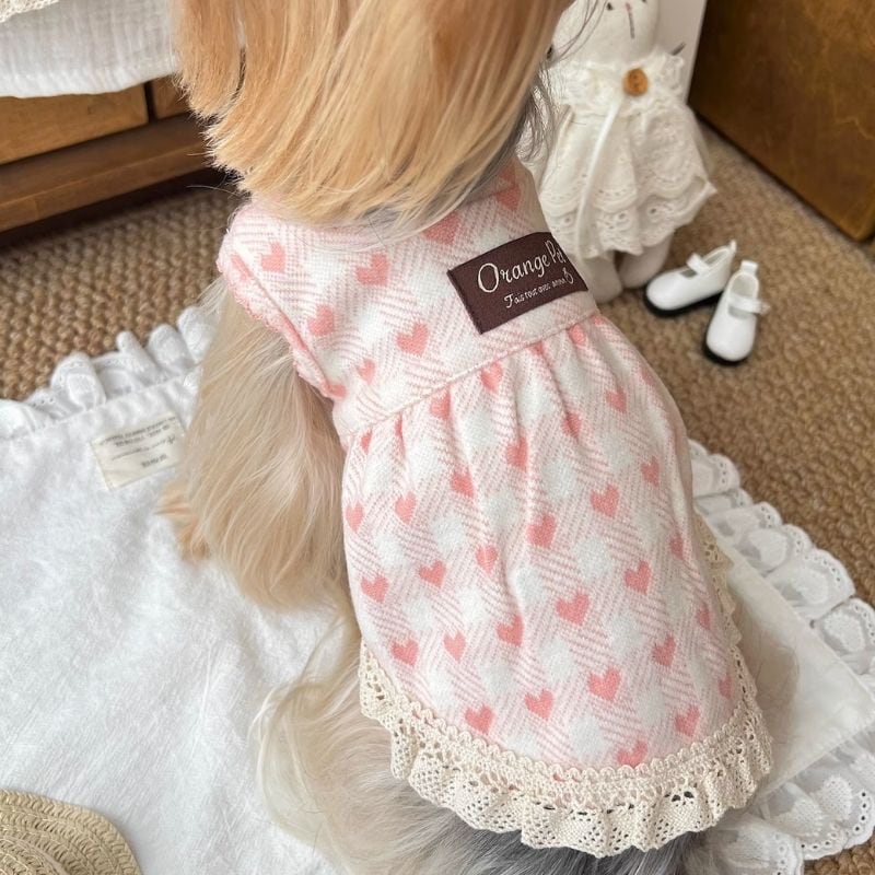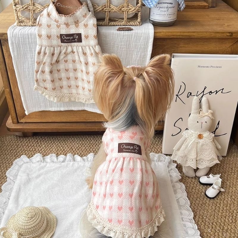 ハートジャガードのビックギンガムが愛らしいワンピース。