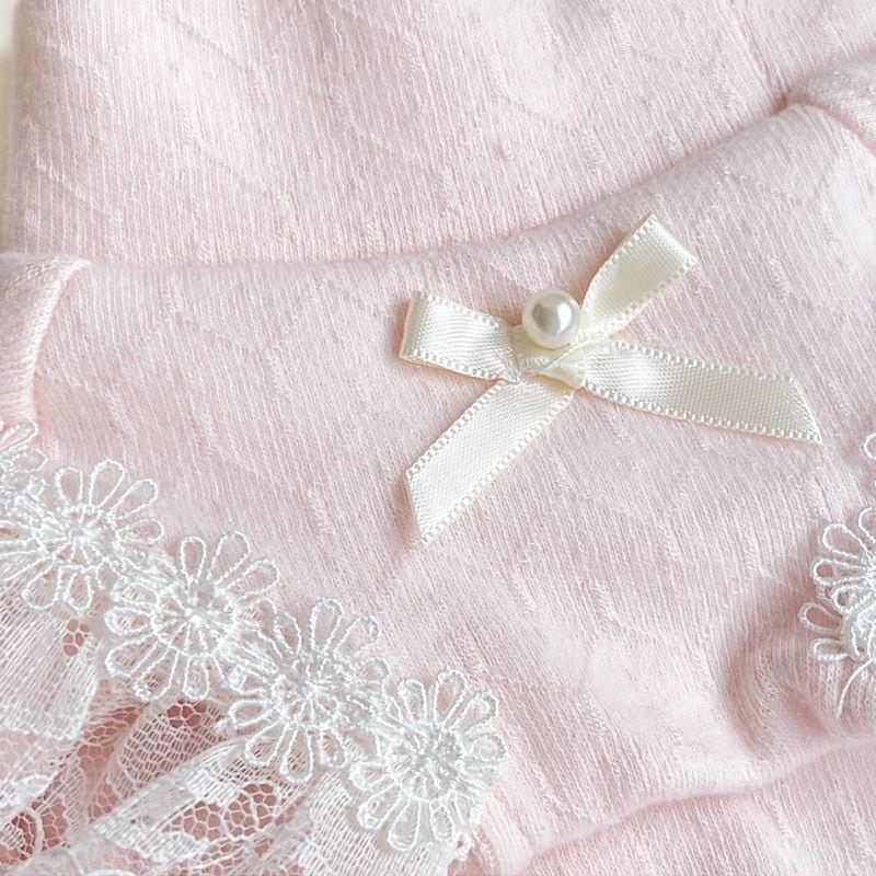 パール調ビーズ付きのリボンがフェミニンな雰囲気を漂わせます。