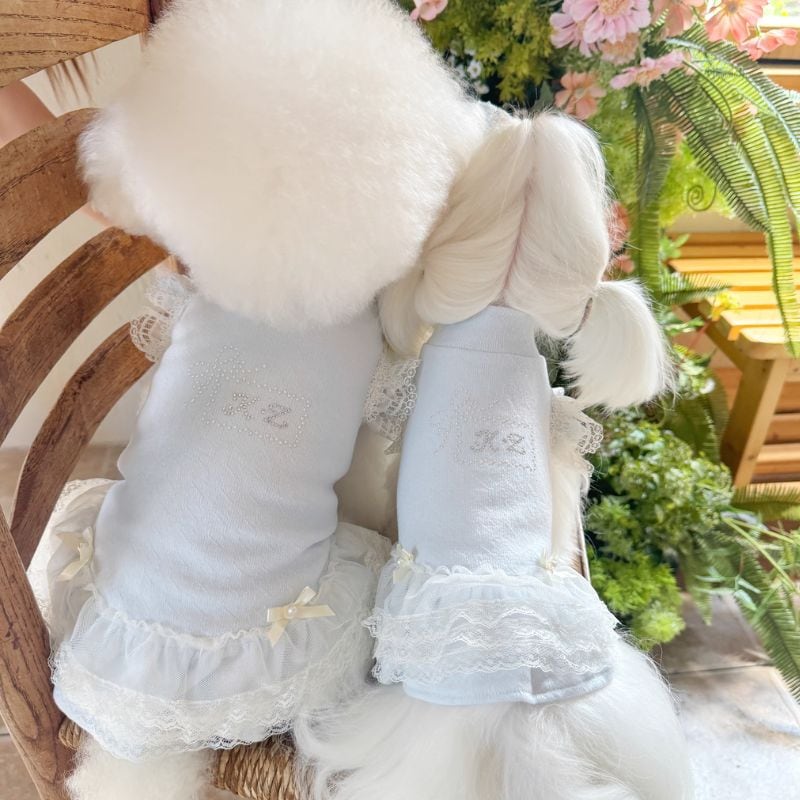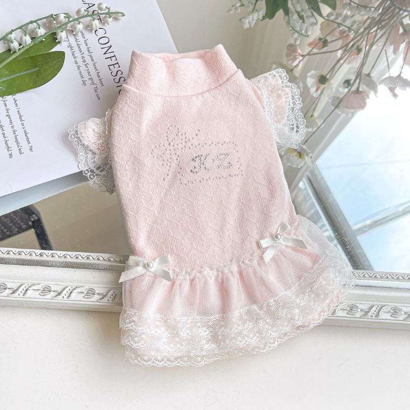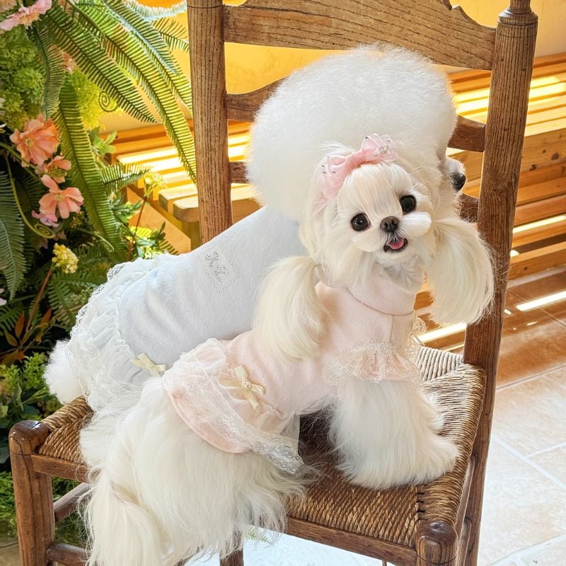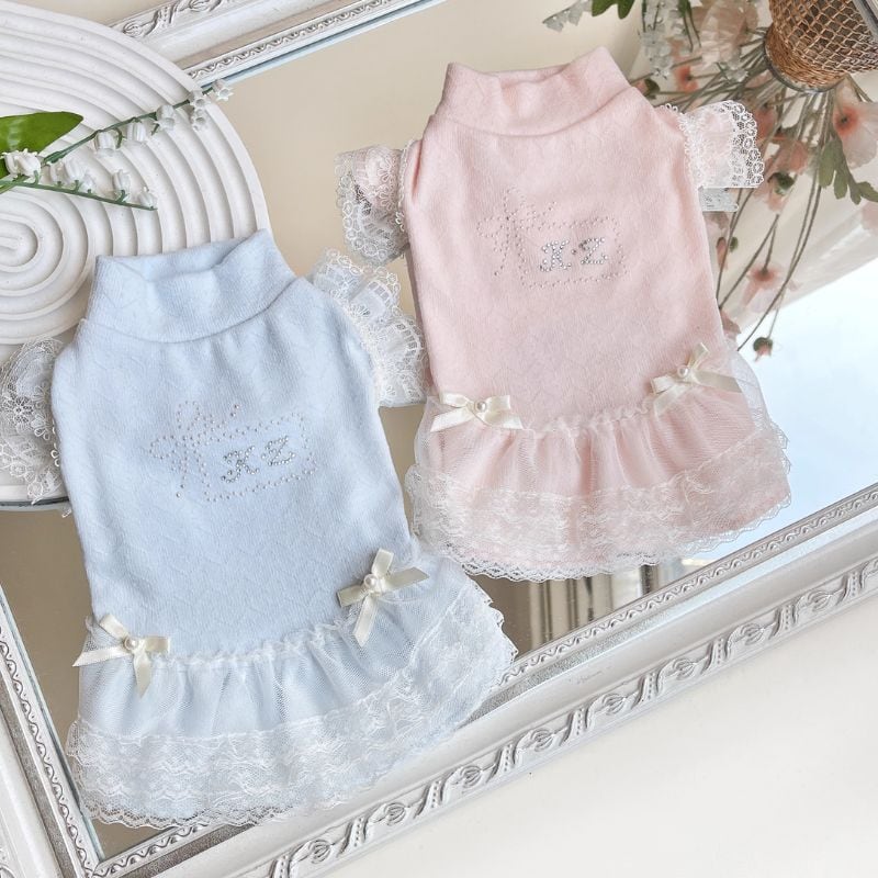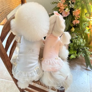ガーリーなジャガードコットのワンピース 犬服 00915
