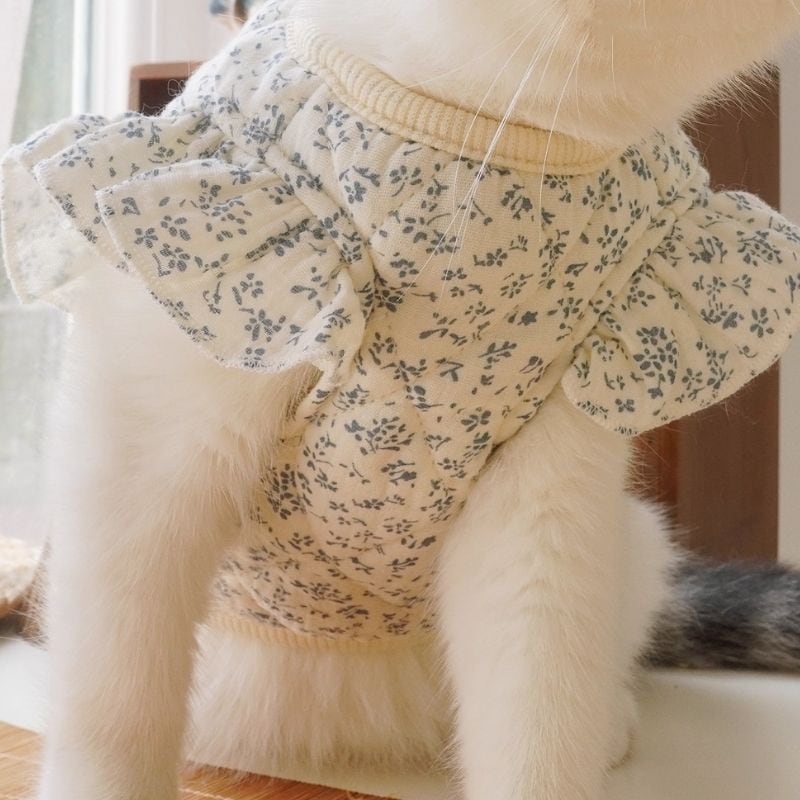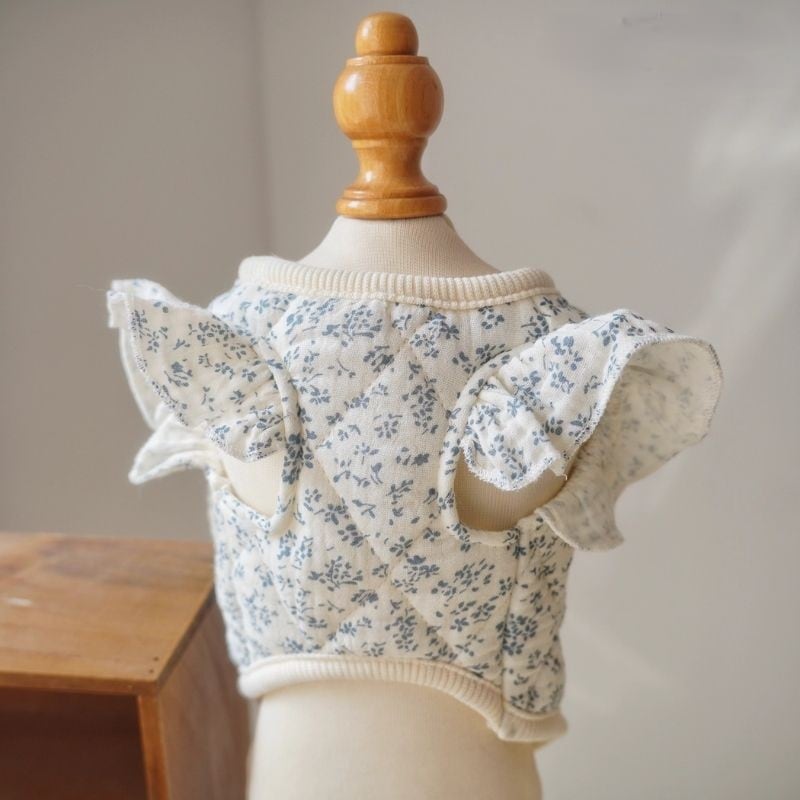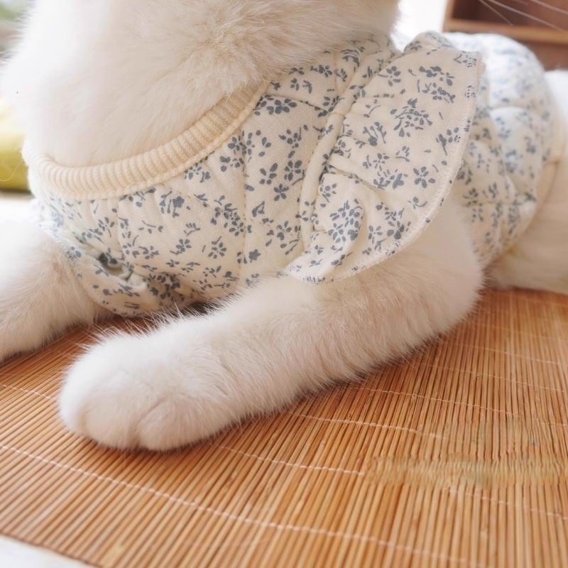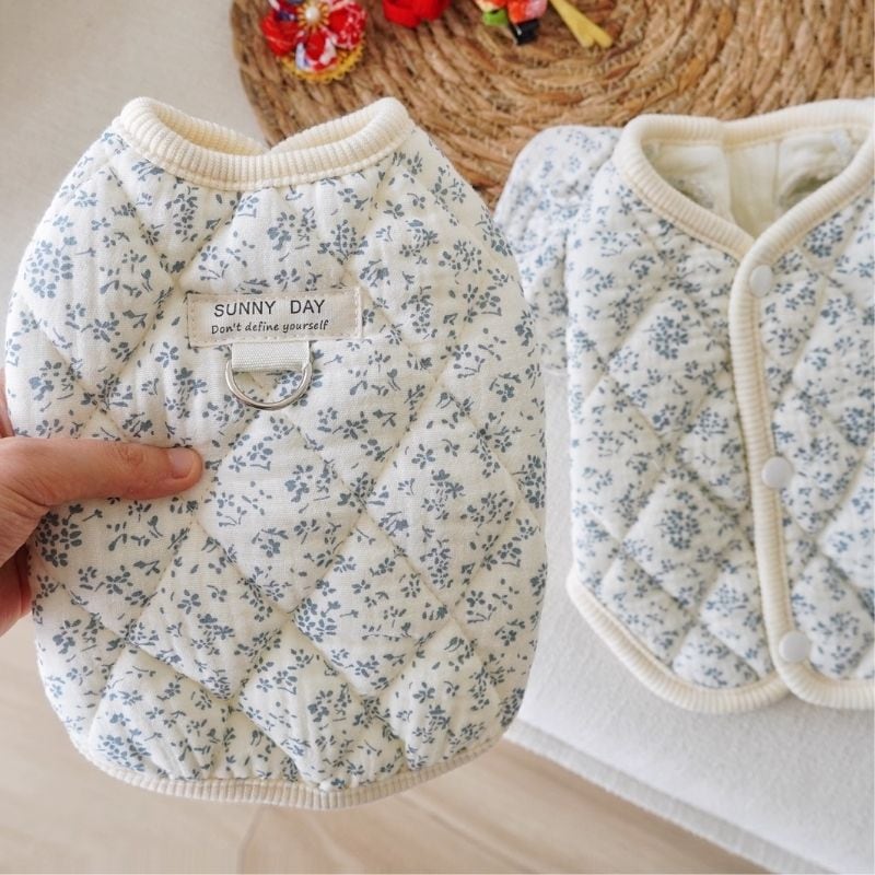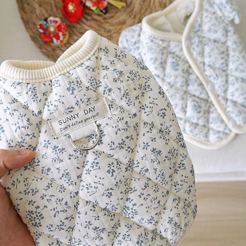 小花柄の中綿入りキルティングベスト 犬猫服 00912