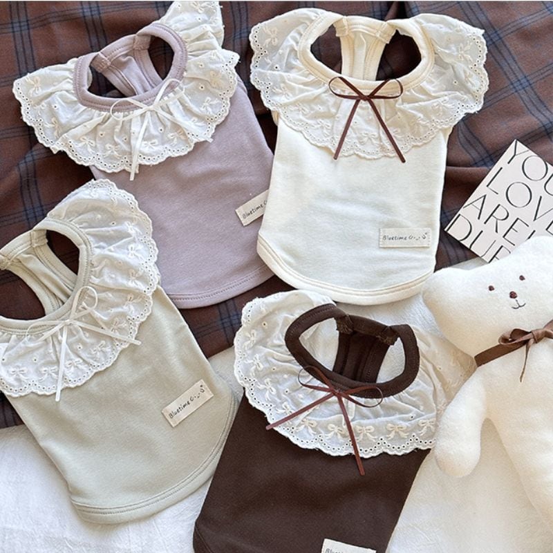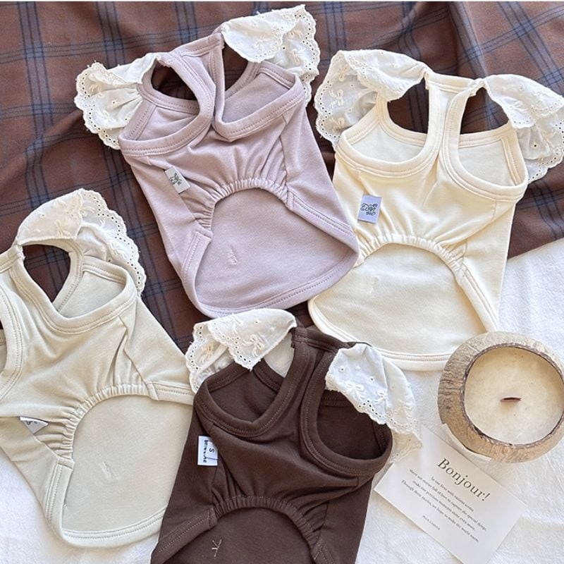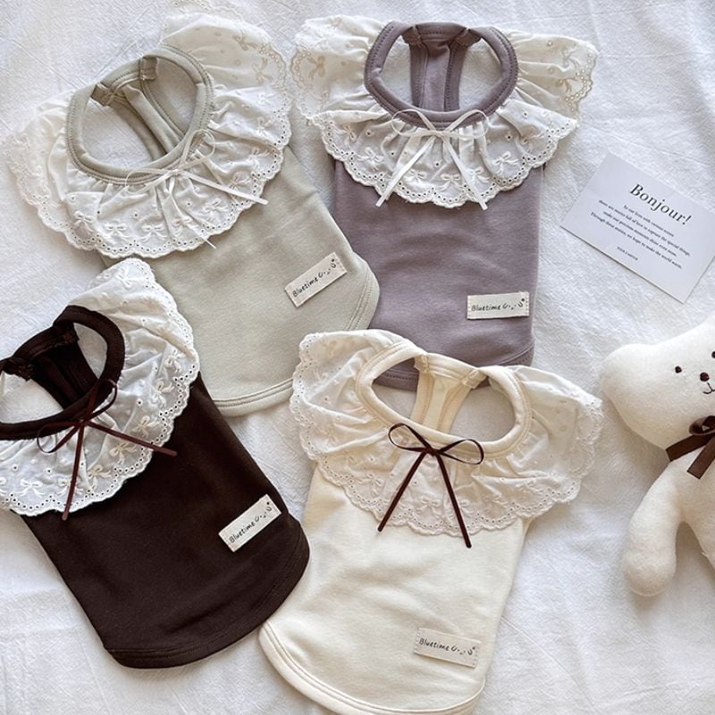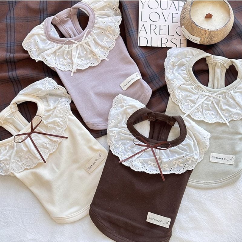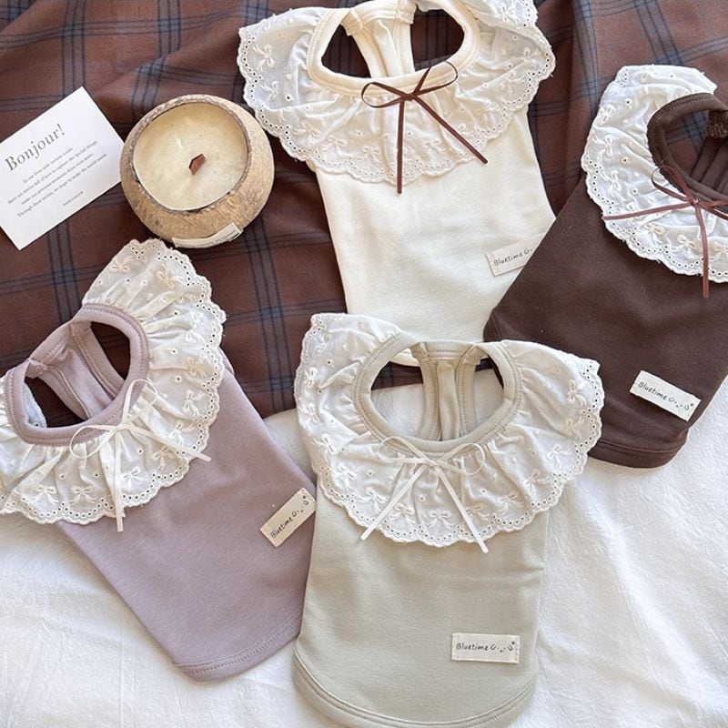 レース襟付スモーキーカラーのキャミソール 犬服 00922
