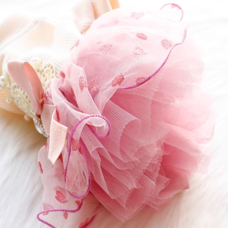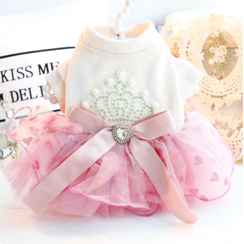 ハート柄ドッキングスカートのプリンセスドレス 犬服 00923