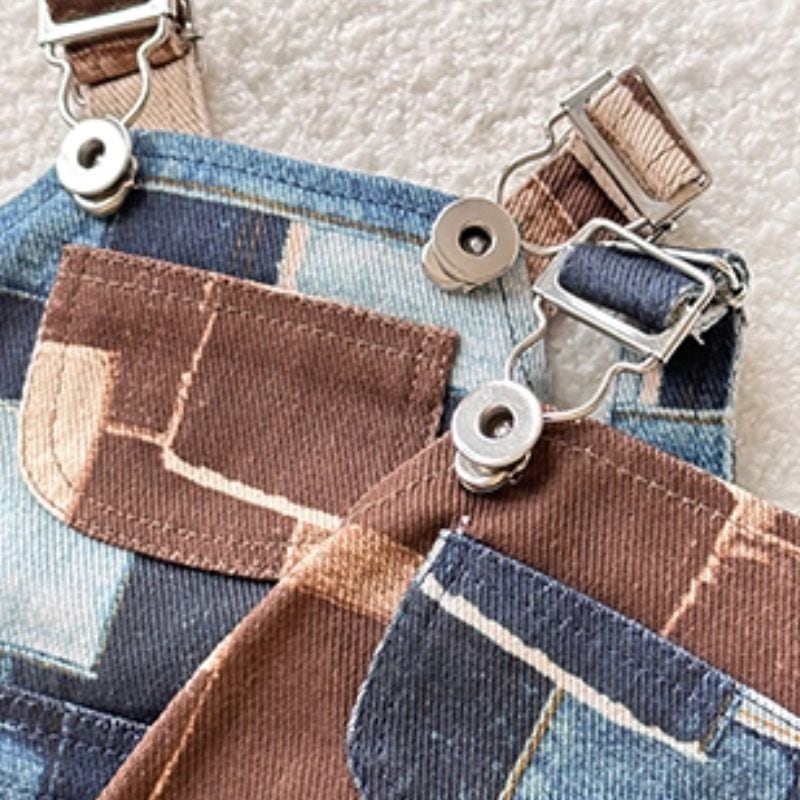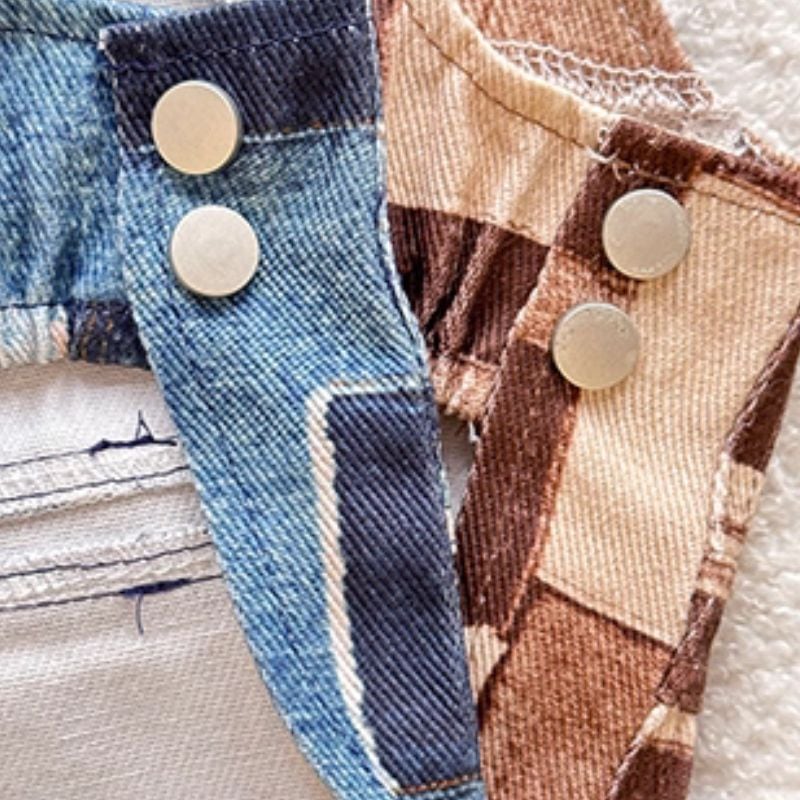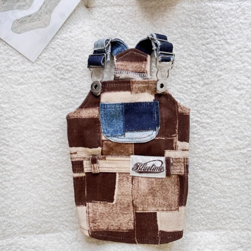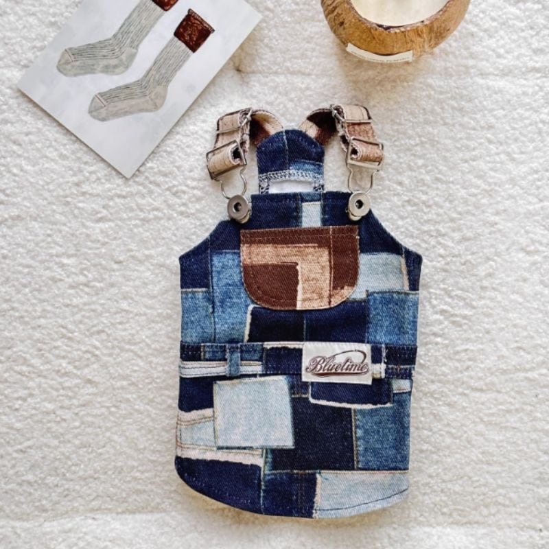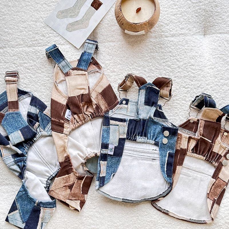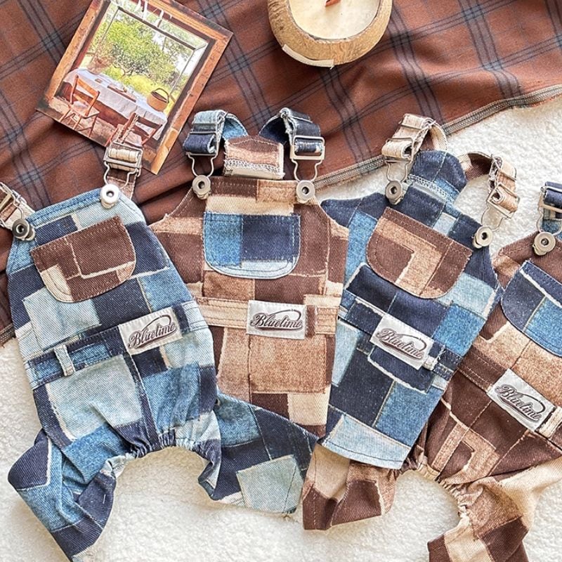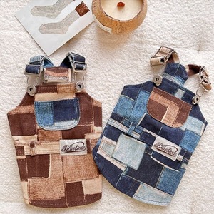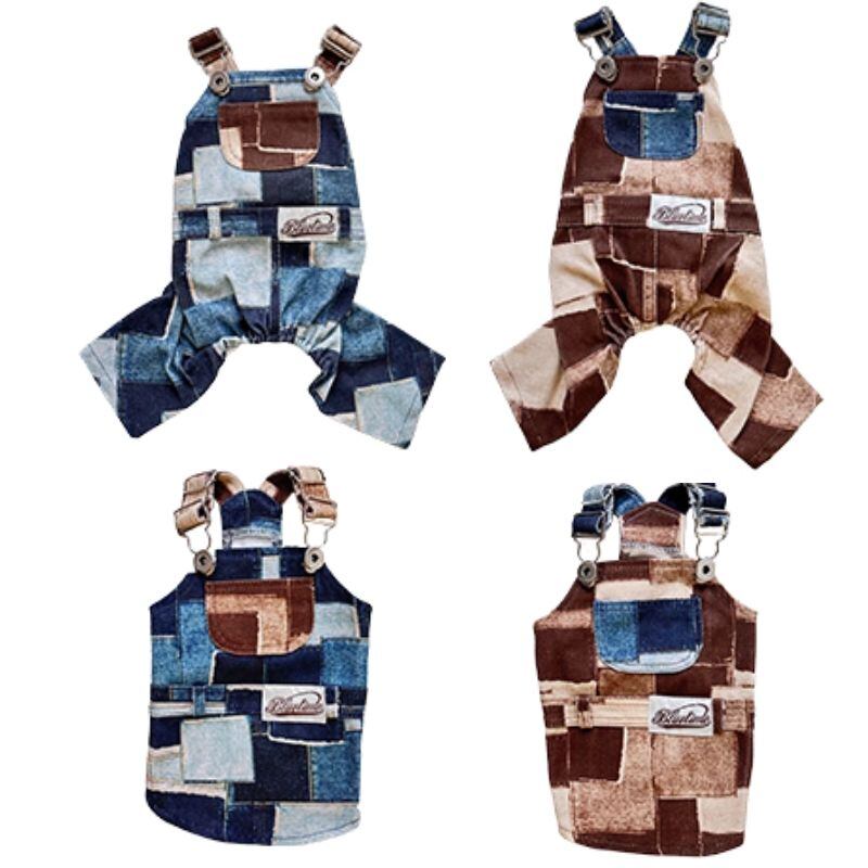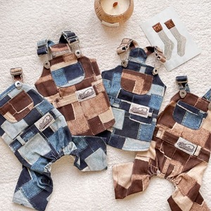 パッチワークプリントデニムのオーバーオール/ロンパース 犬服 00925