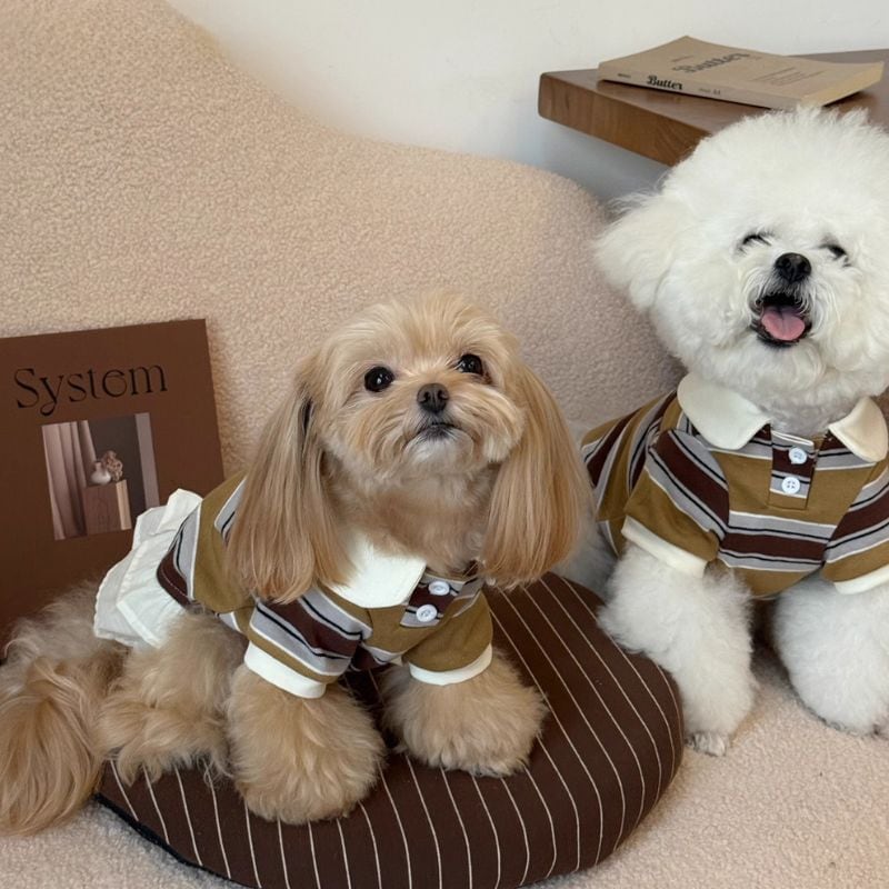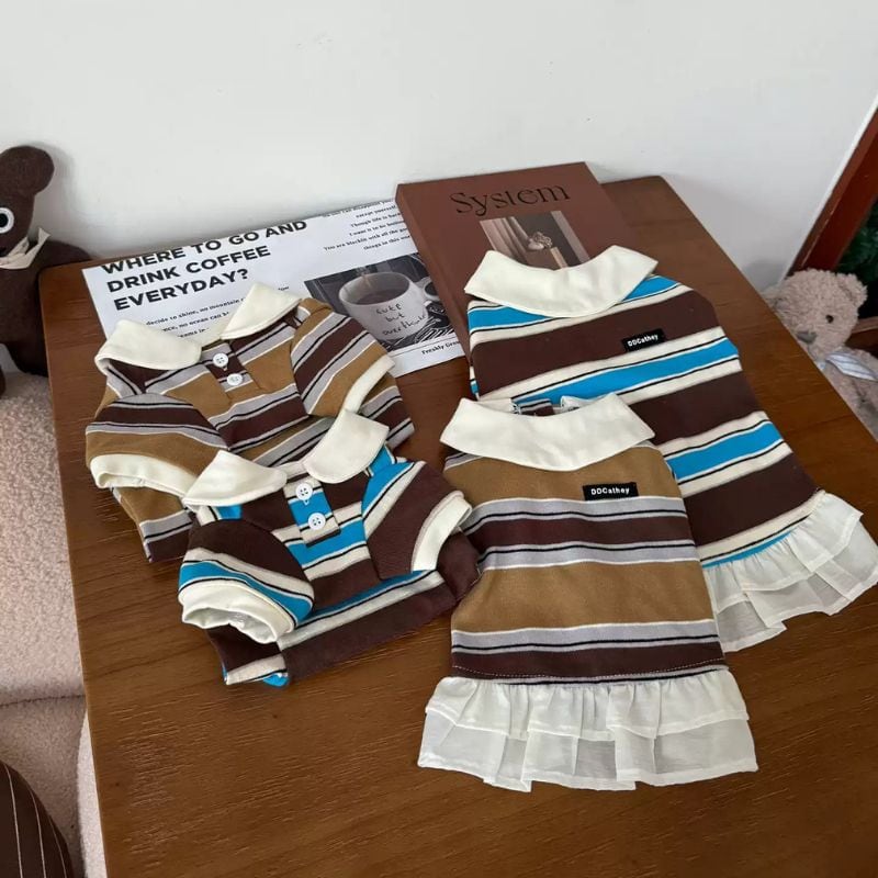 ストライプのポロシャツ/ワンピース 犬服 00926