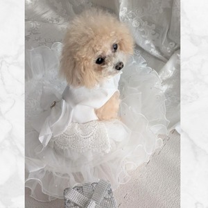 ビッグリボン付ホワイトプリンセスドレス 犬猫服 00941