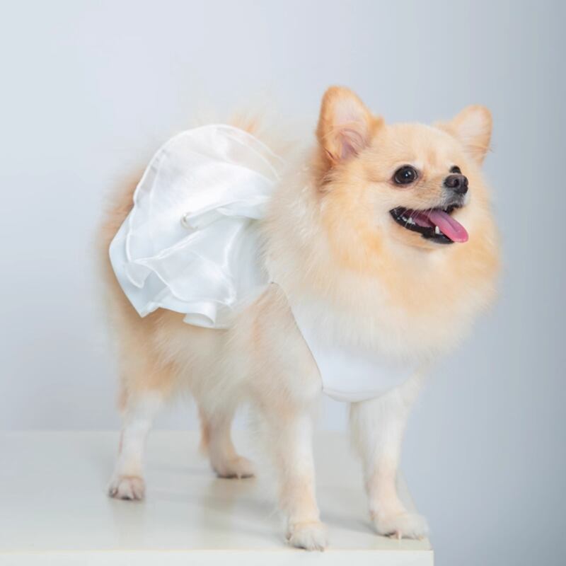 ホワイトサテンのドレス 犬服 00942