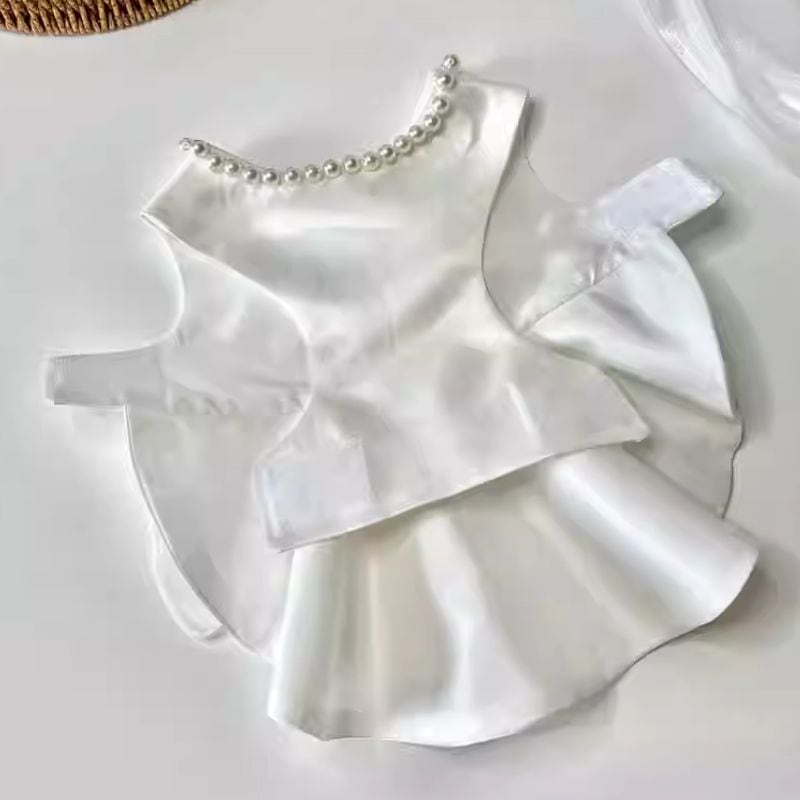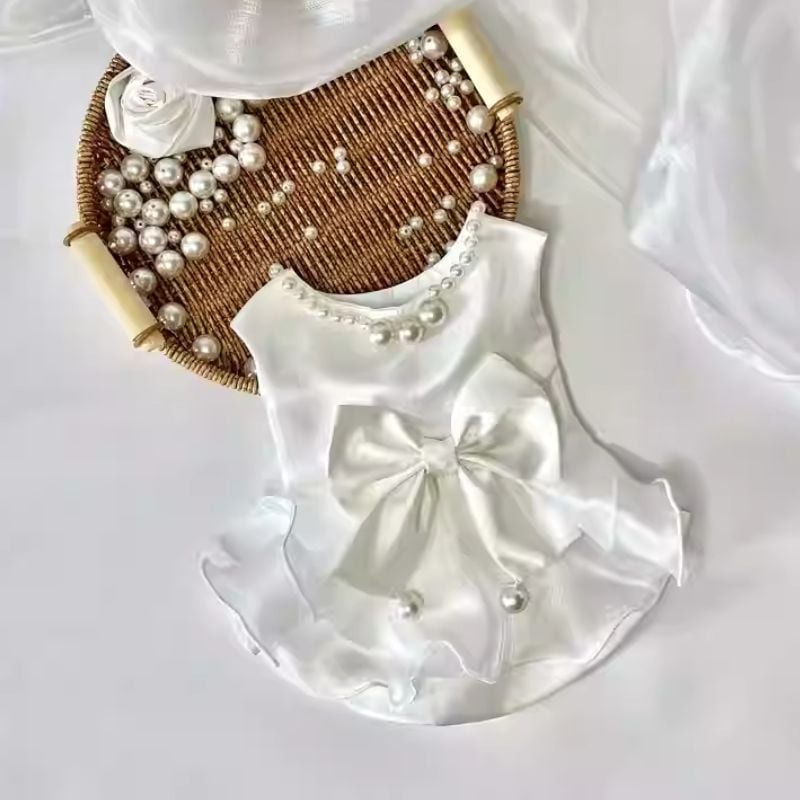 ウエストのテールにフェイクパールをあしらったリボンが特別な日を美しく彩ります。