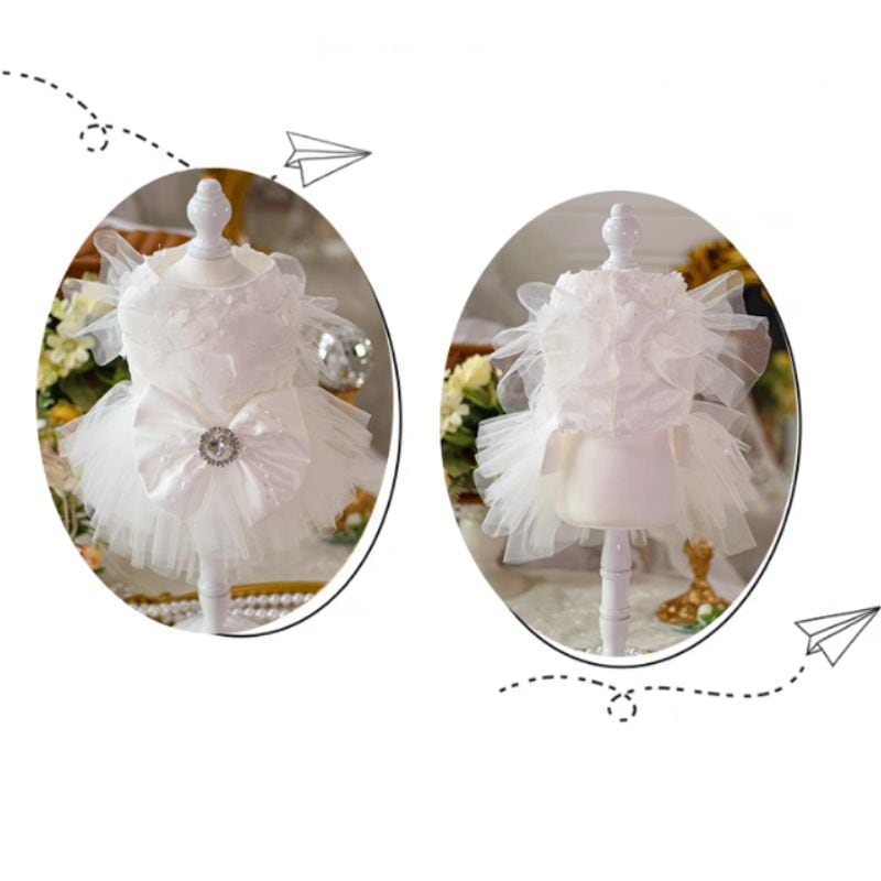 立体フローラルとリーフ刺繍が繊細にきらめくホワイトドレス。