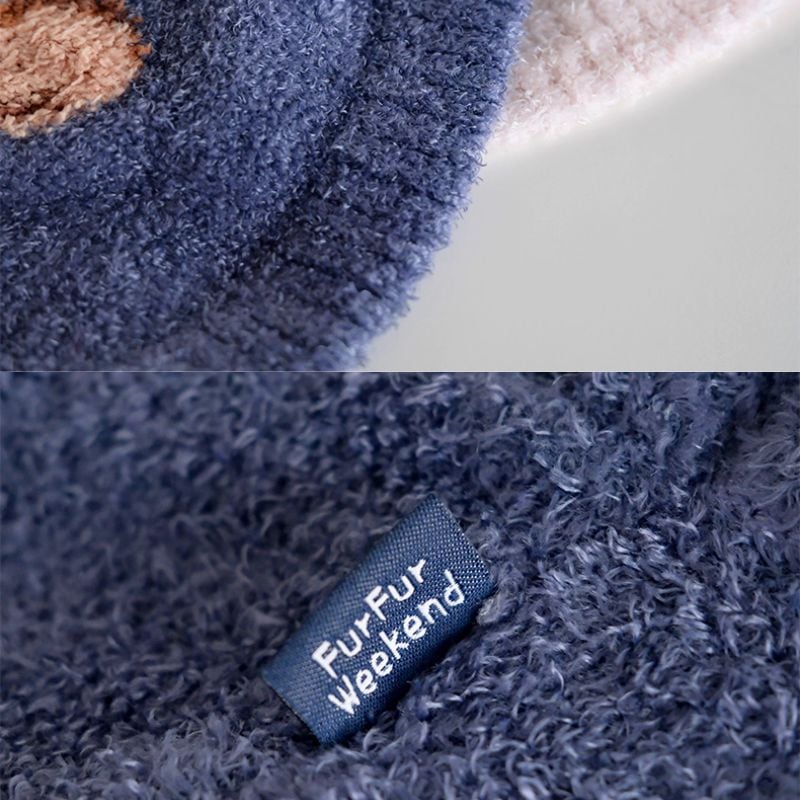 襟ぐり・袖口・裾のリブ編みがやさしくフィットし、お部屋時間を優しく包み込みます。