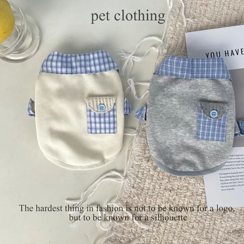 レギュラーカラーの襟・前立て・袖のカフスにチェックをあしらい、背中のフェイクポケットが遊び心をプラス。