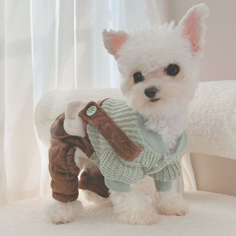 ぬくぬくニットのサロペット風ロンパース 犬服 01002