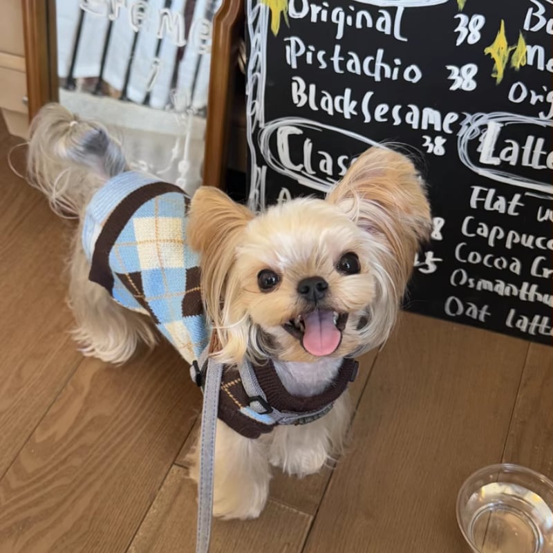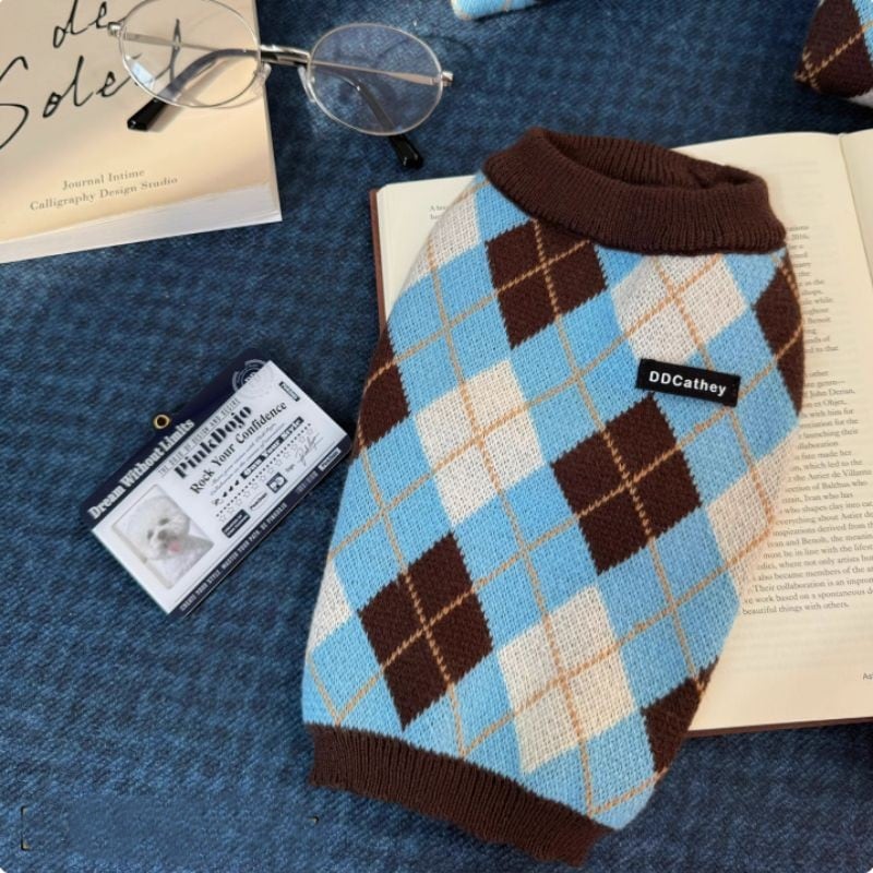 アーガイルチェックのニットトップス 犬服 01011