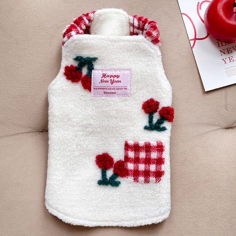チェリーモチーフ付ボアのワンピース 犬服 01013