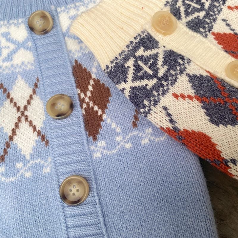 アーガイルとノルディック柄を組み合わせた洒落感漂うジャカードセーター。