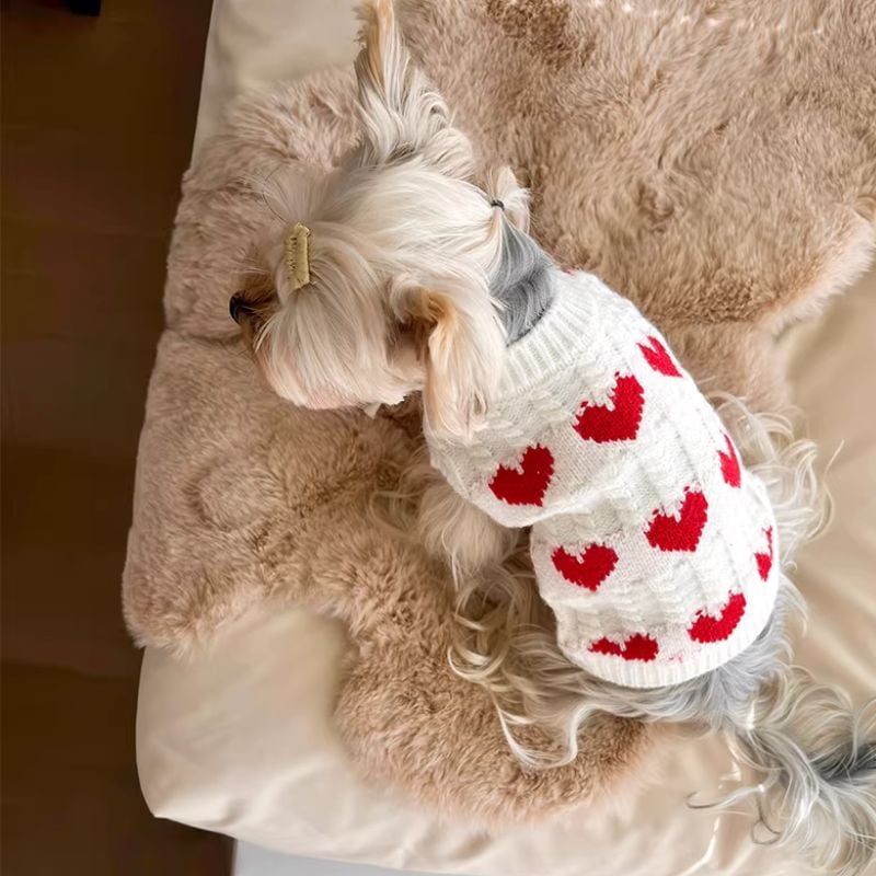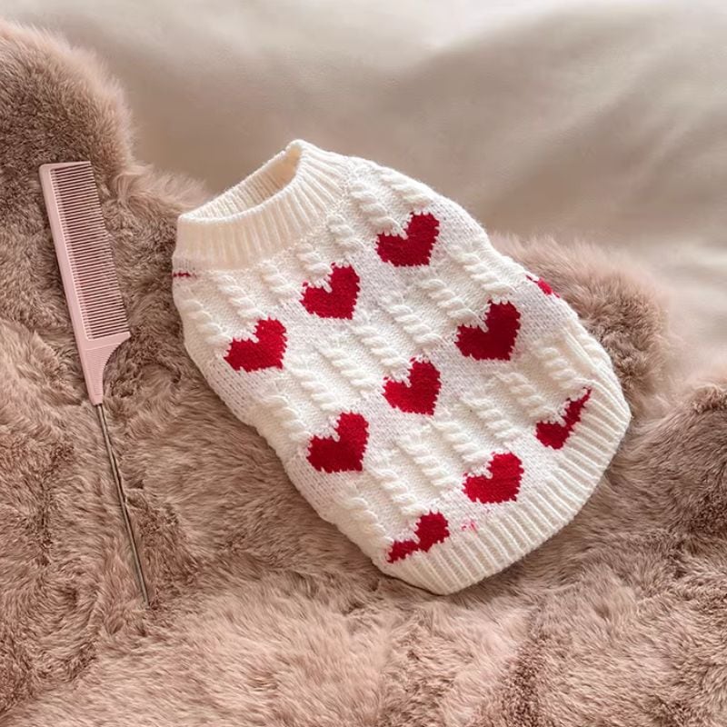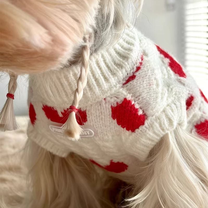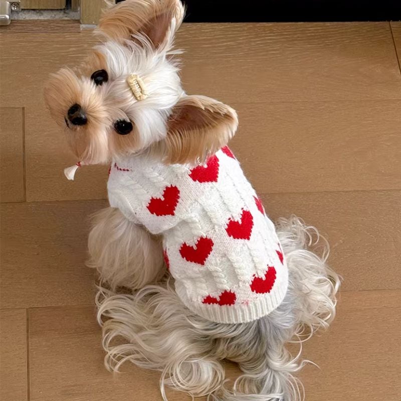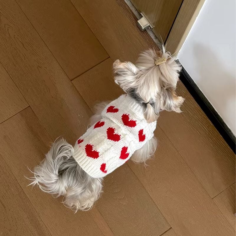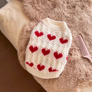 赤いハート柄の白いセーター 犬服 01031
