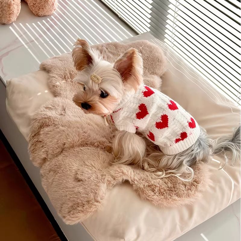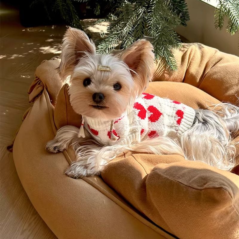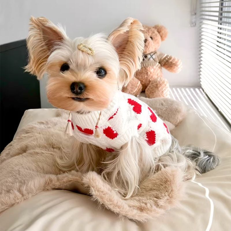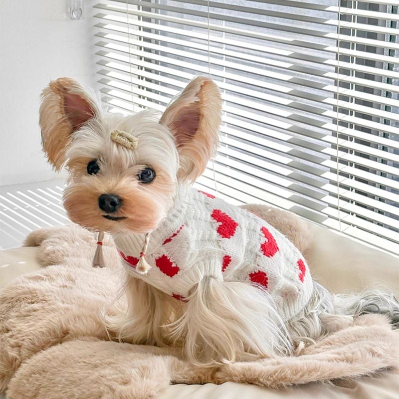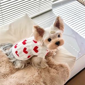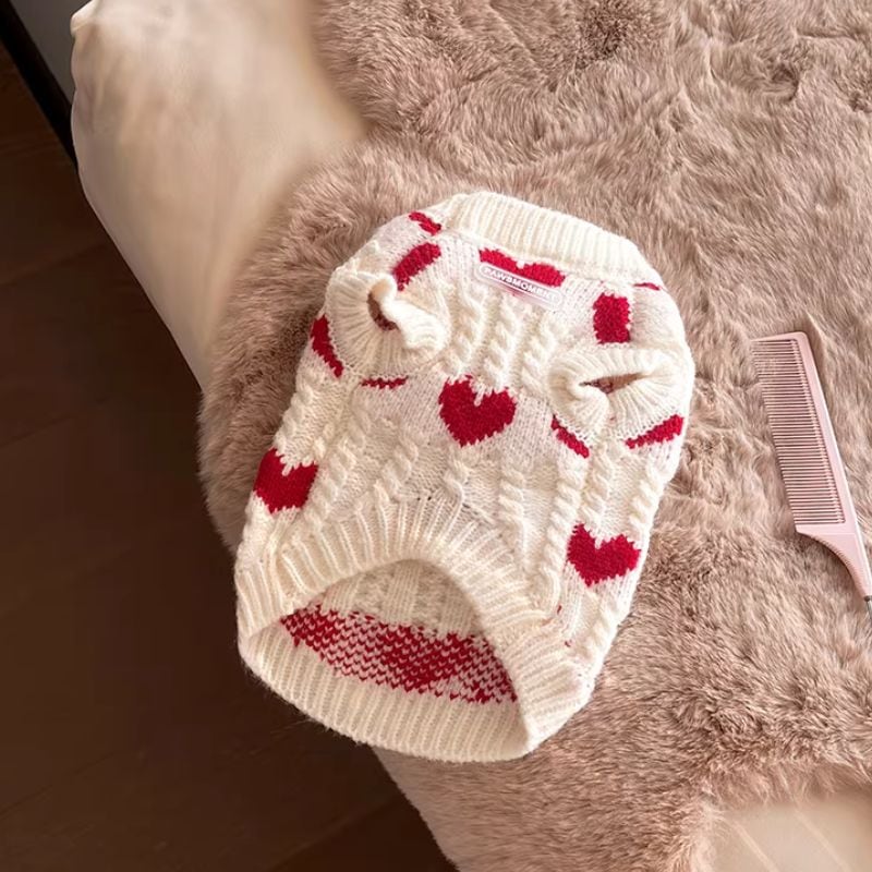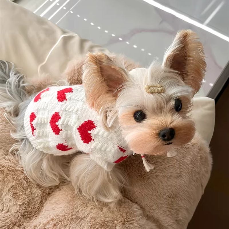 赤いハート柄の白いセーター 犬服 01031