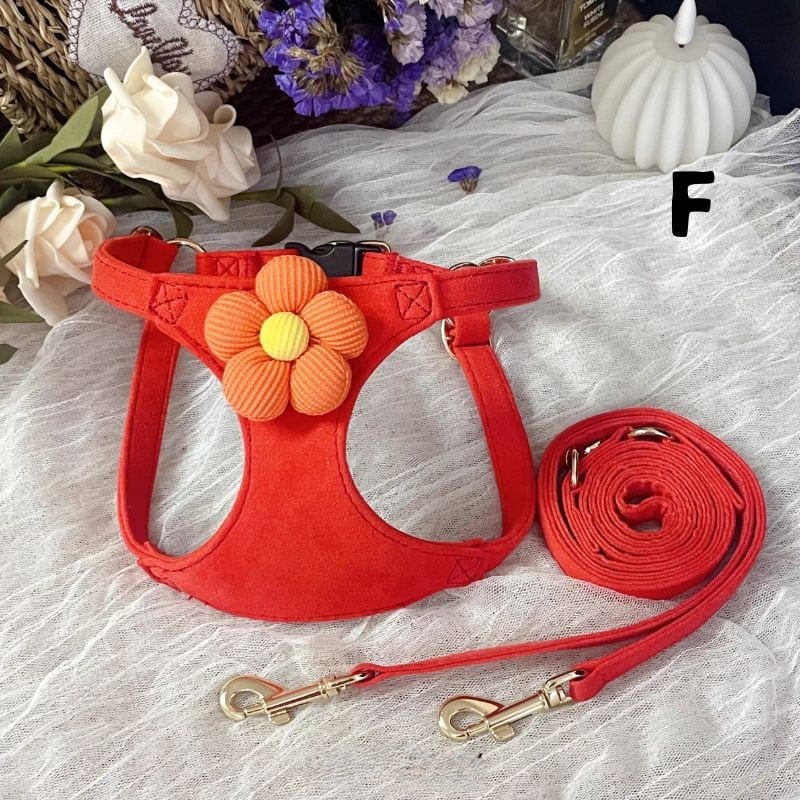 立体フラワーモチーフ付ハーネスとリードのセット 01045