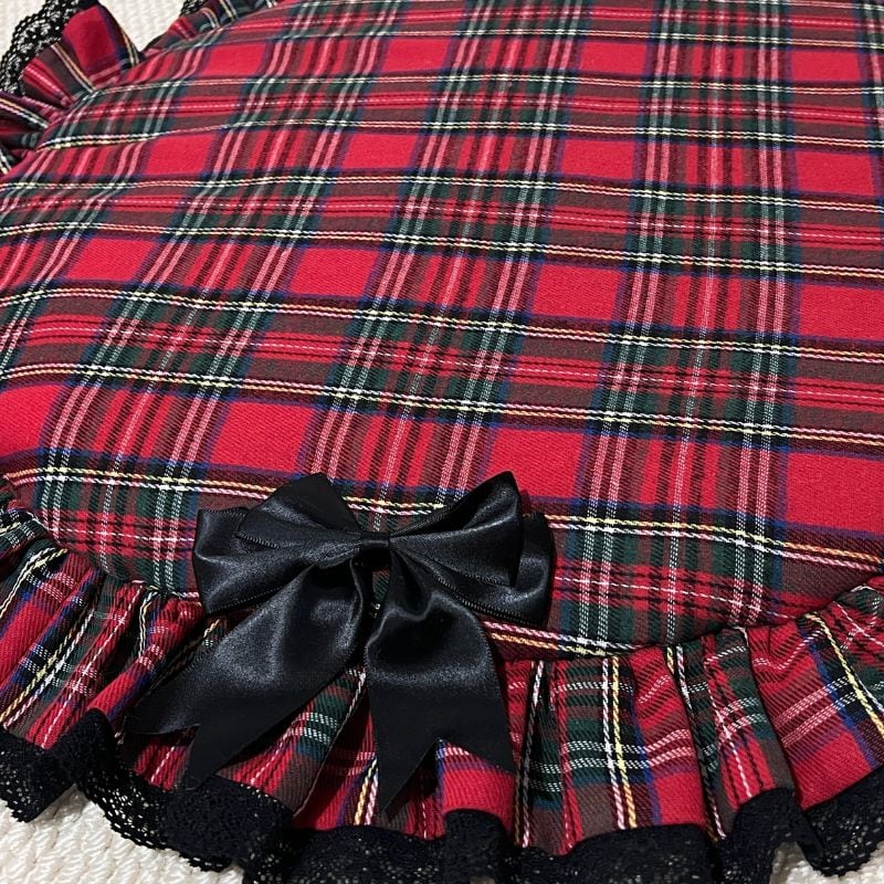 赤いタータンチェックのサークルマット 01047