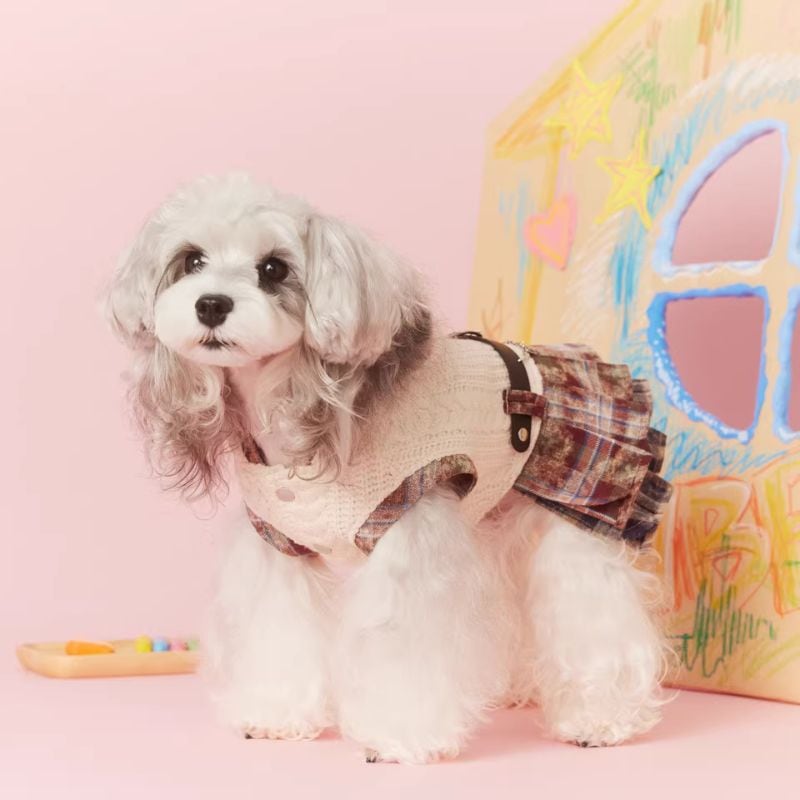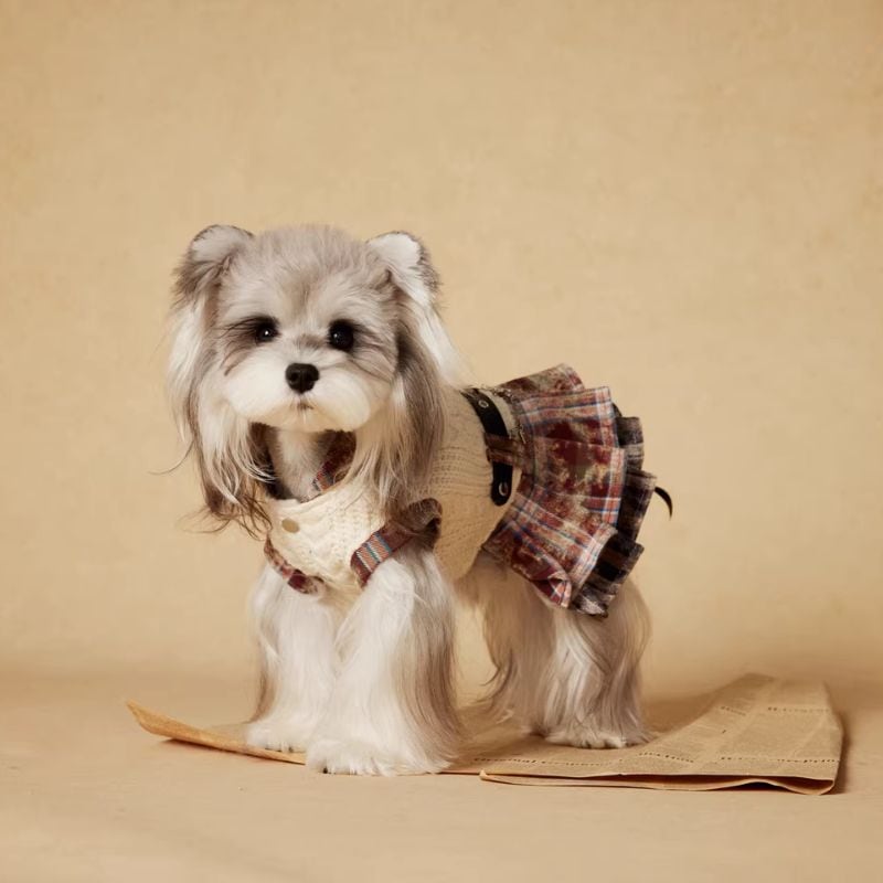 チェックスカートとニットのドッキングワンピース 犬服 01049
