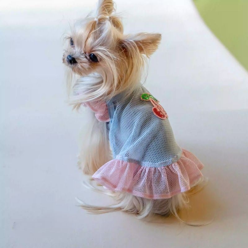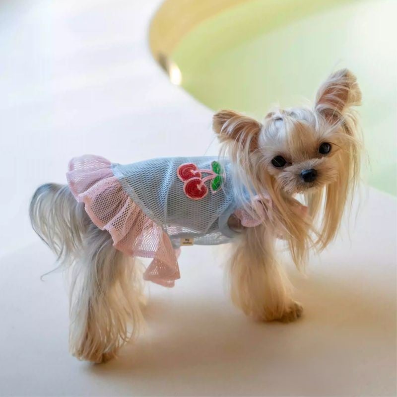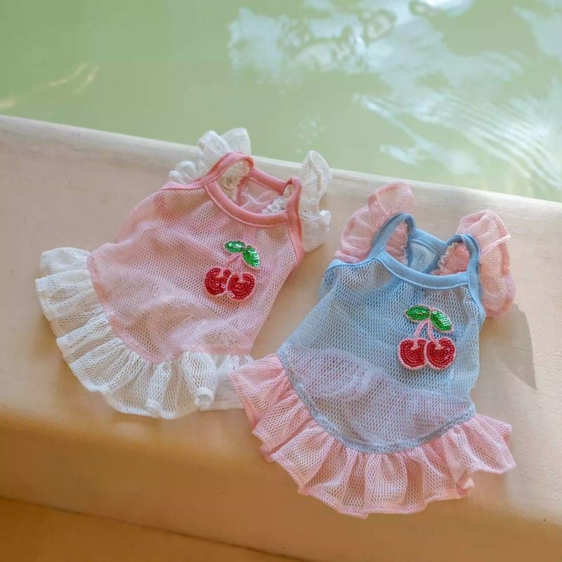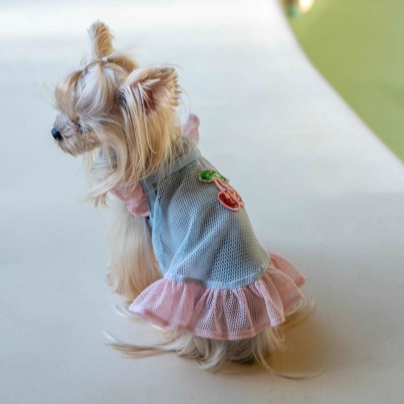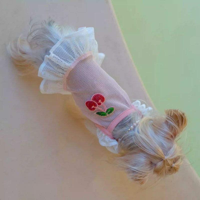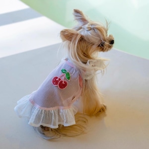 【海外ハンドメイド】チェリーモチーフ付キャミソールワンピース 犬服 01064