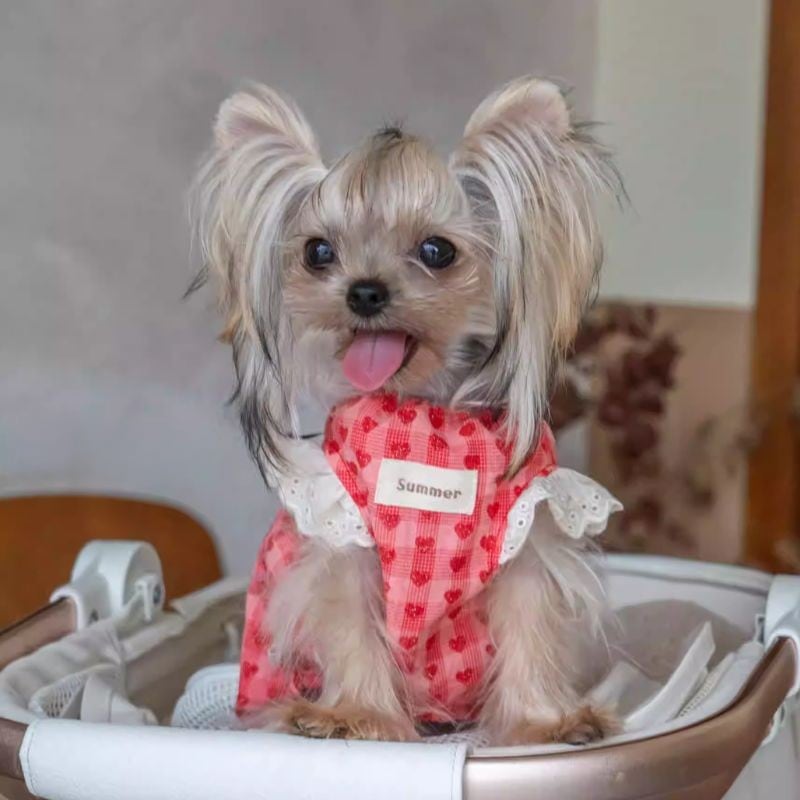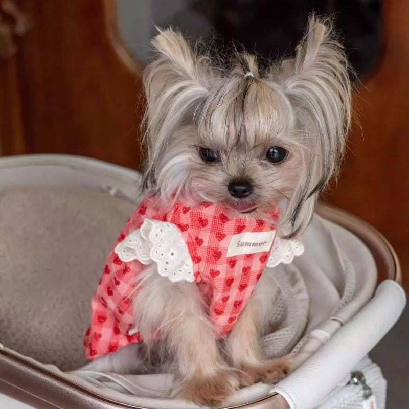 レッドのラメが踊るハートビッグギンガムが目を惹くトップス。