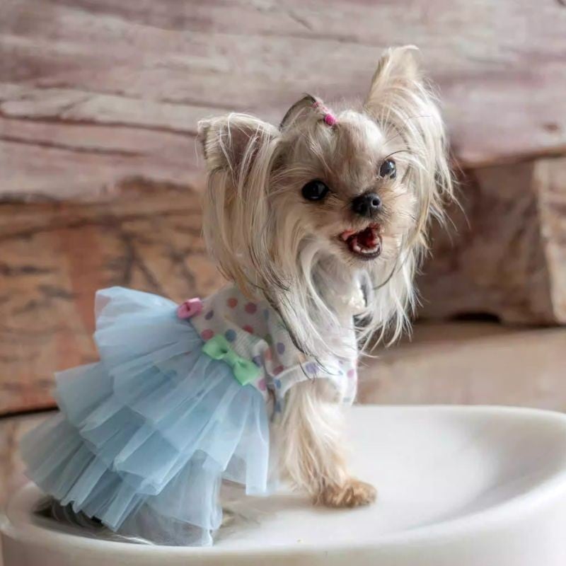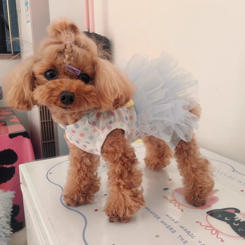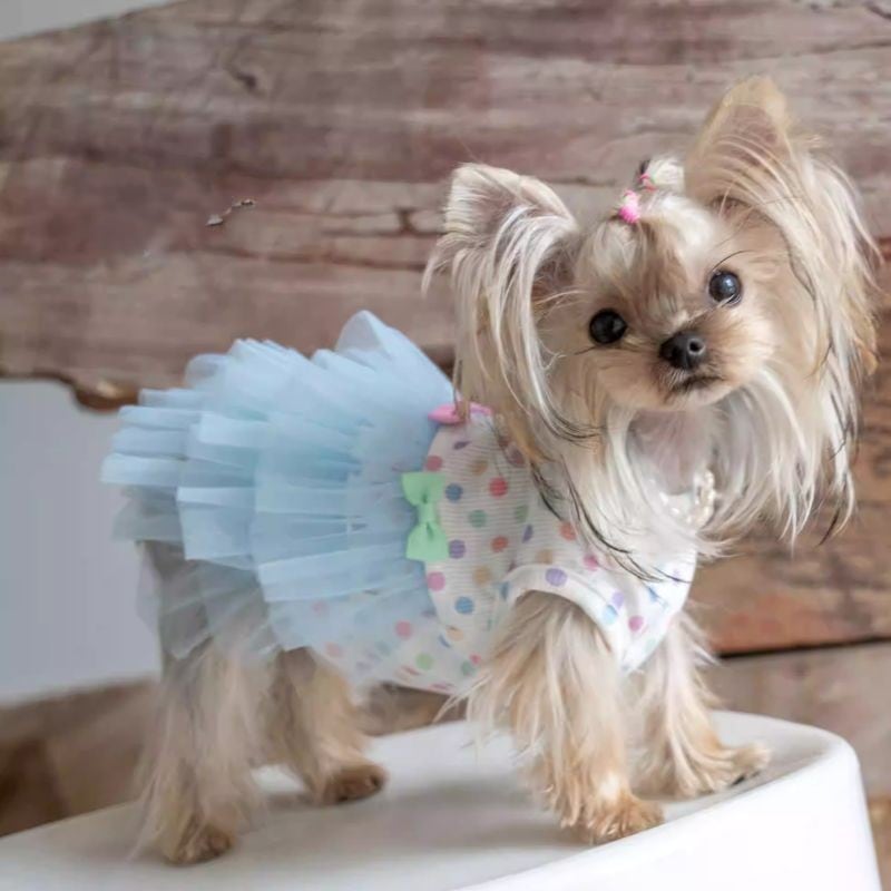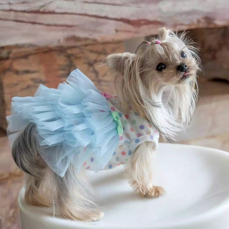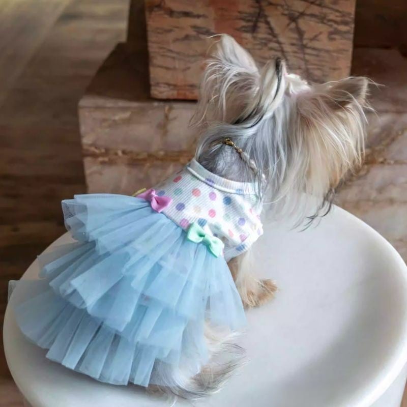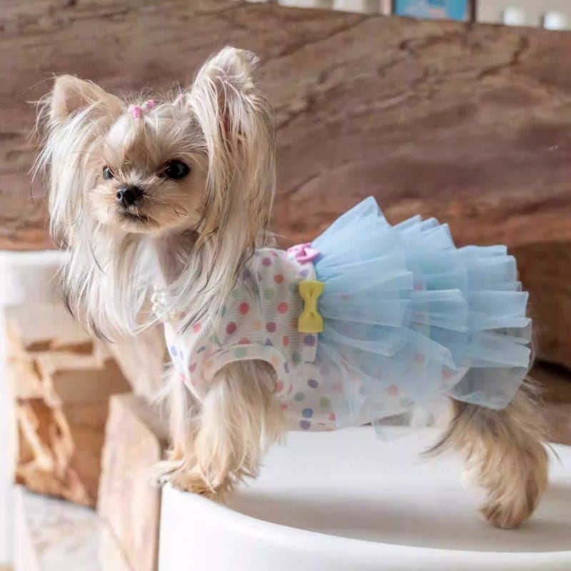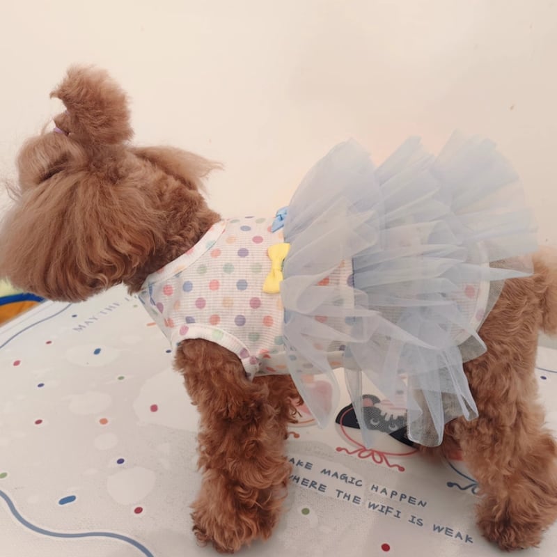 【海外ハンドメイド】カラフルドットとチュールスカートのドレス 犬服 01069