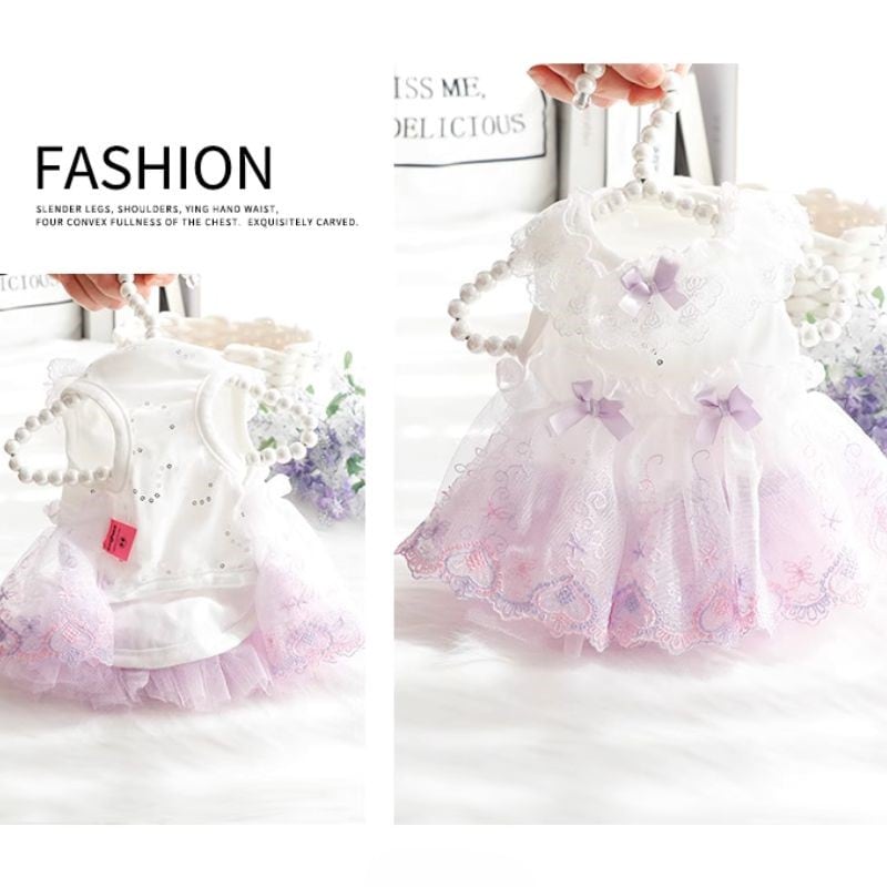 OUTLET【XSサイズのみ】フリルパープルドレス 犬服 01110