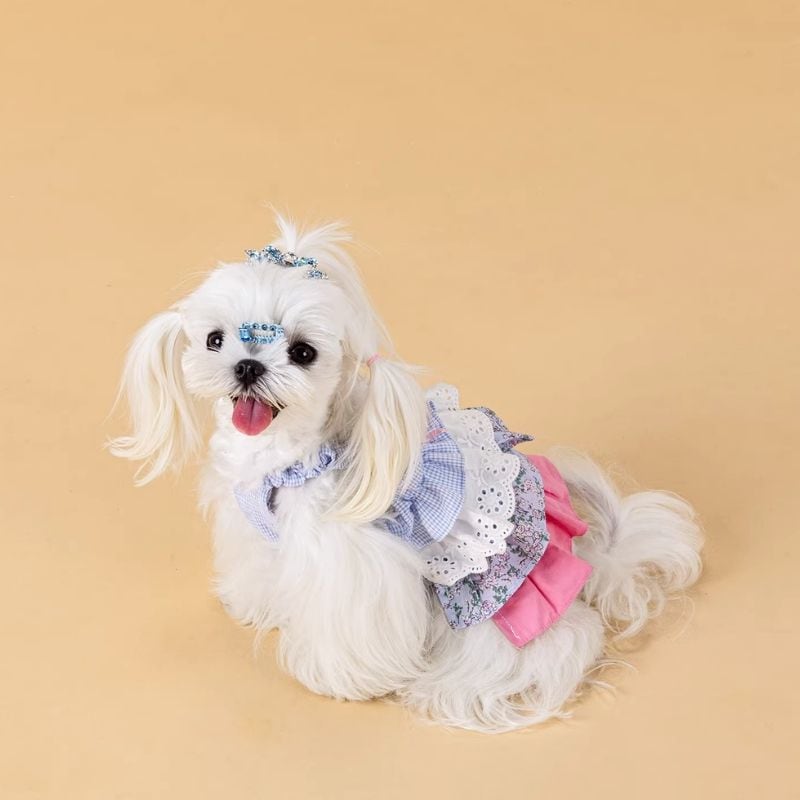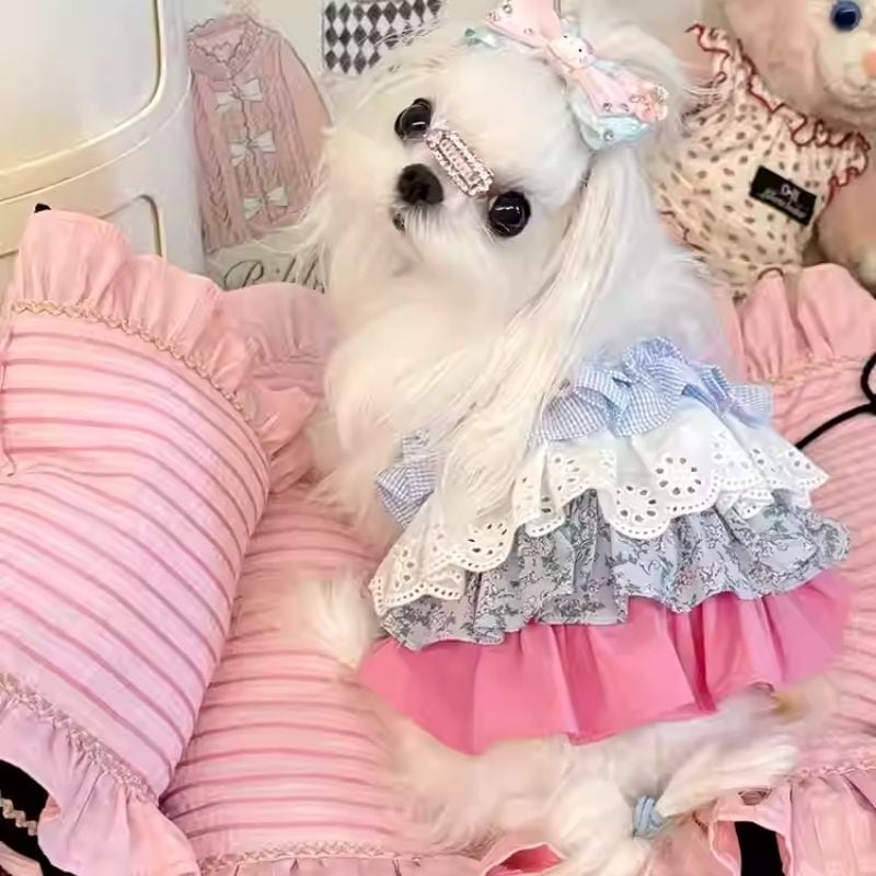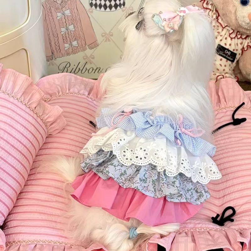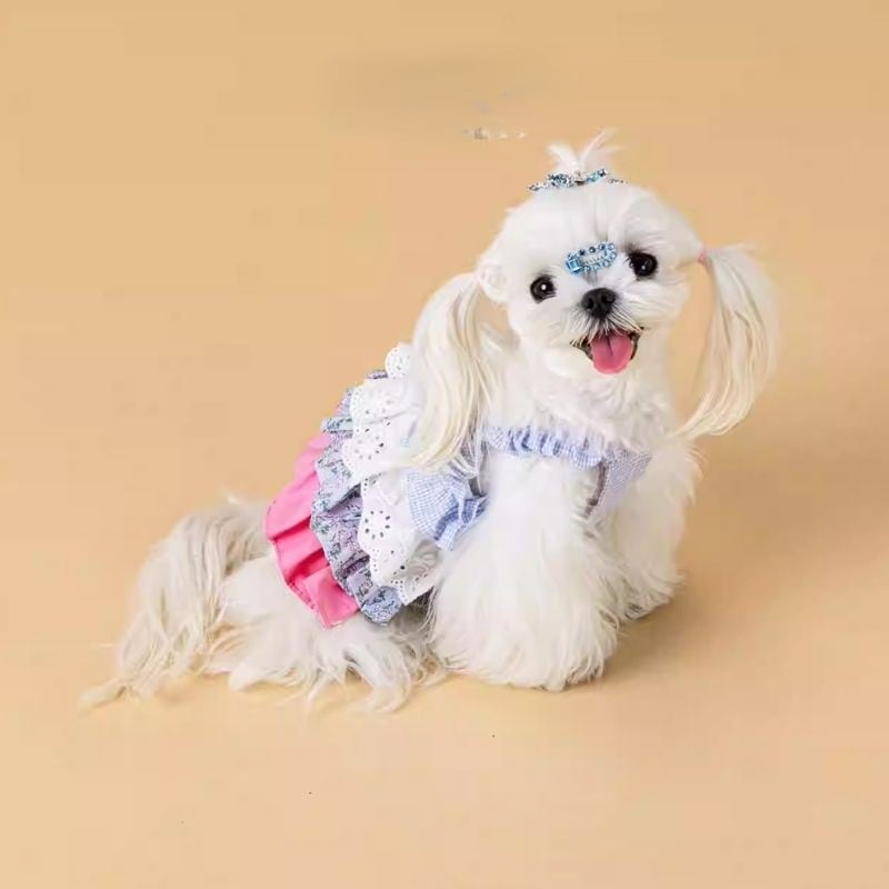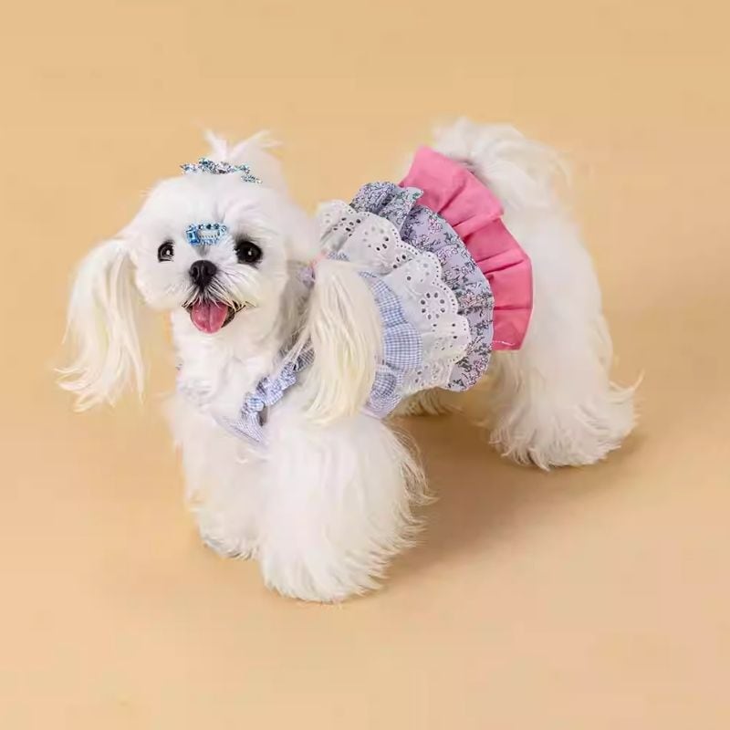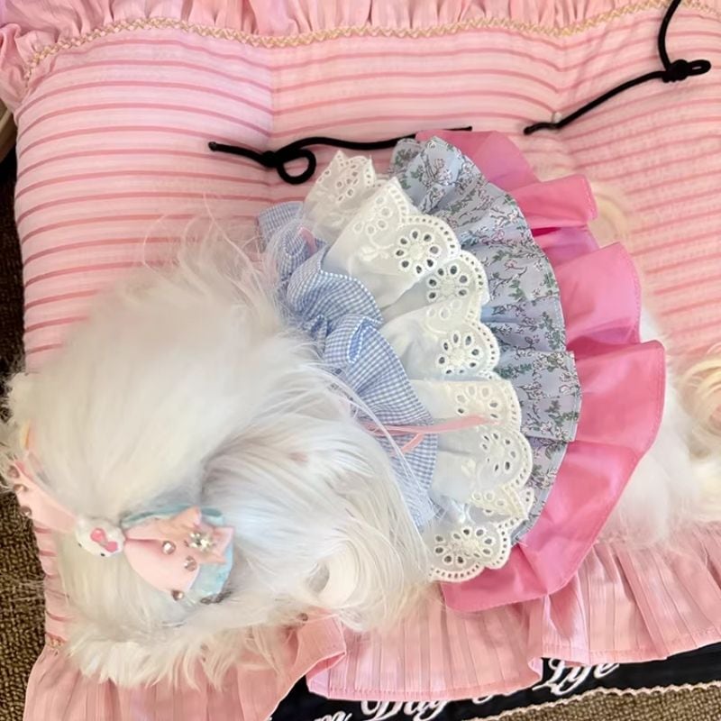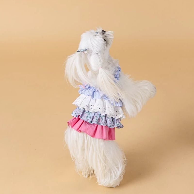 異素材ドッキングフリルのワンピース 犬服 01081