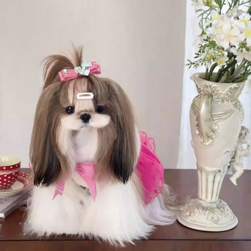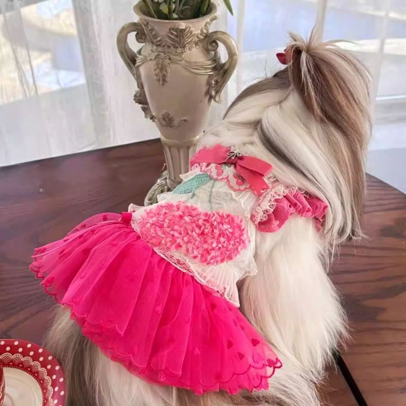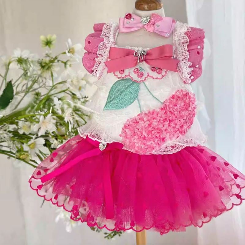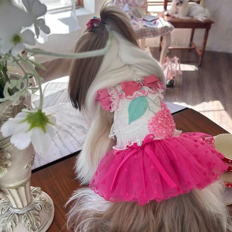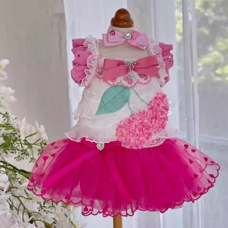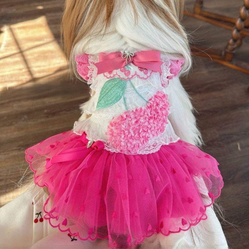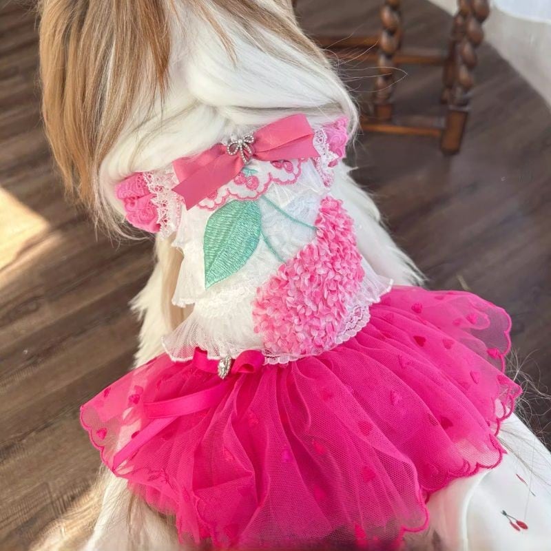 【海外ハンドメイド】チェリーとチュールスカートのドレス 犬服 01120