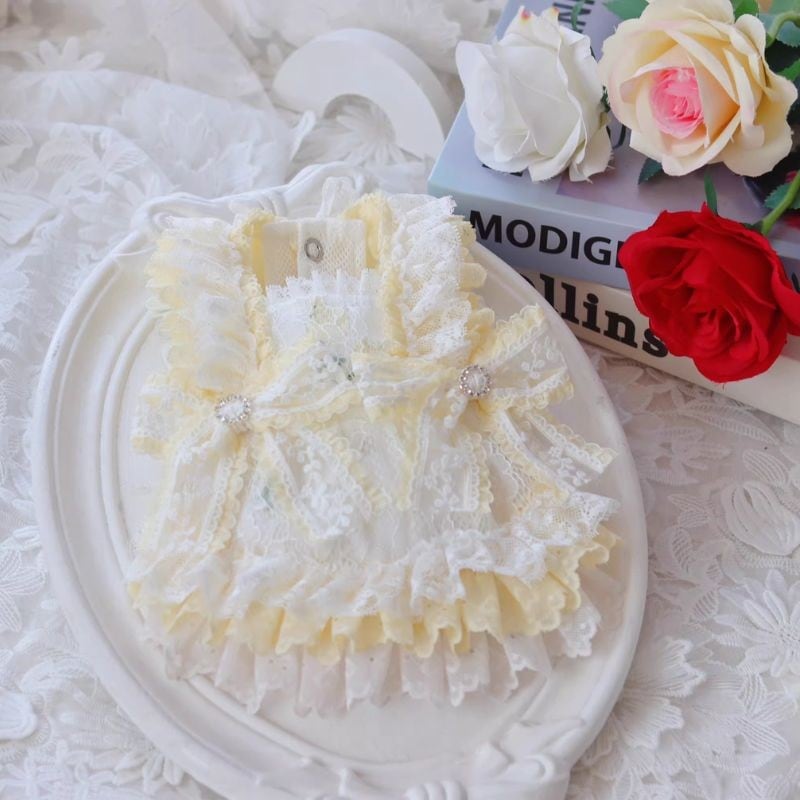 【海外ハンドメイド】リッチレースのイエロードレス 犬服 01127