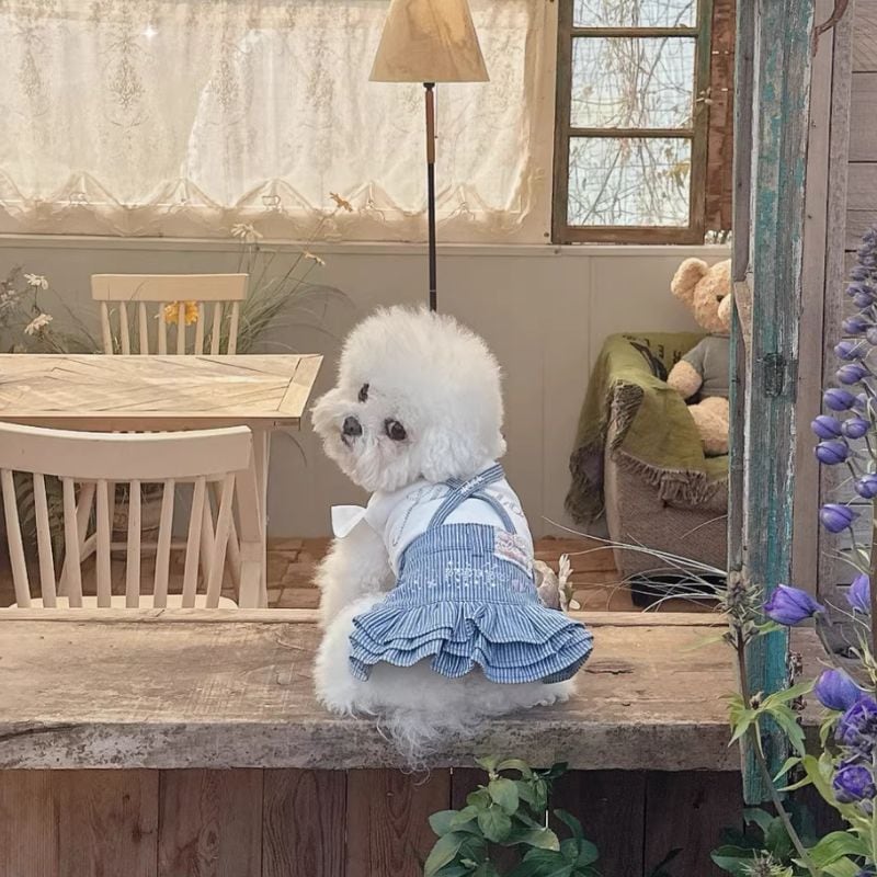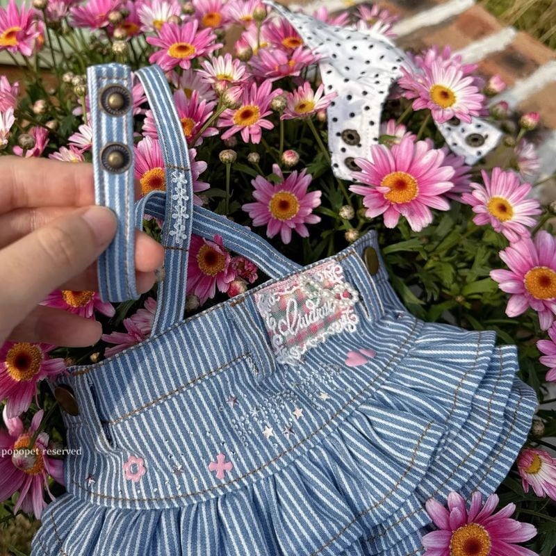 ストライプ柄デニム生地のサロペットスカート 犬服 01130