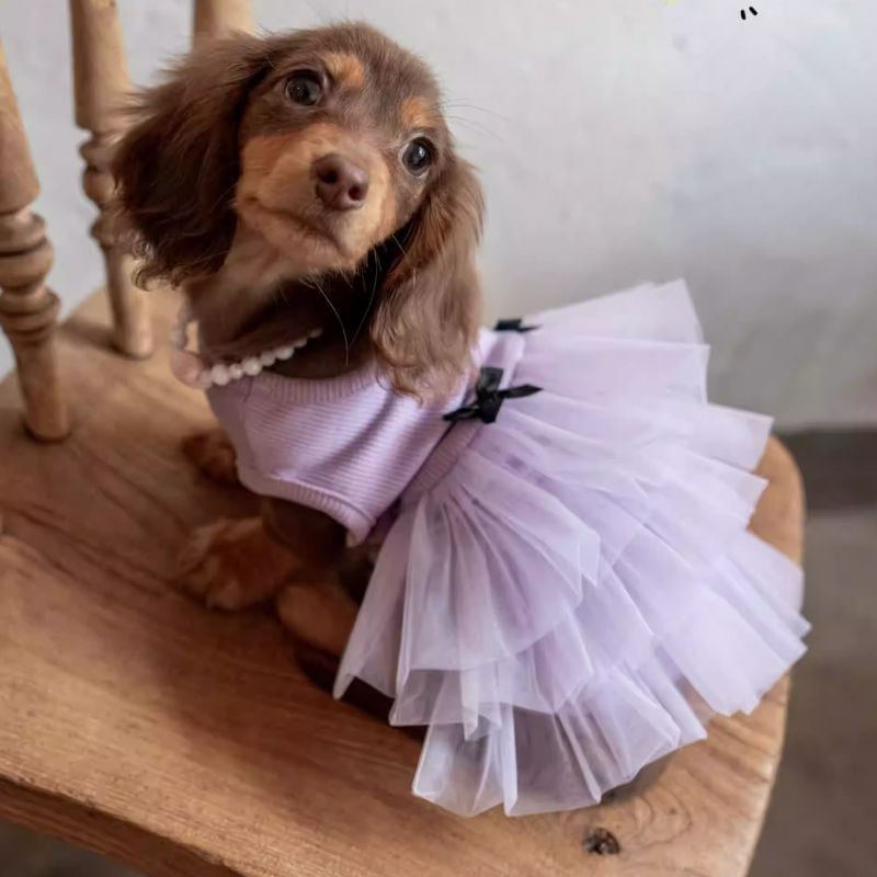 【予約】ダックス用ラベンダーのチュールスカートドレス 犬服 01138