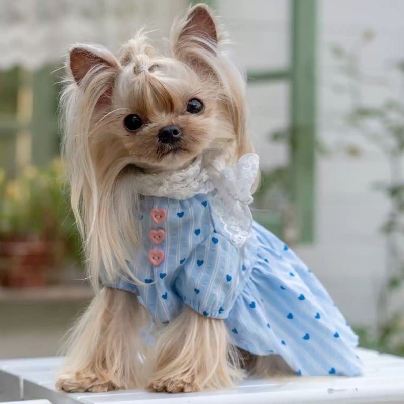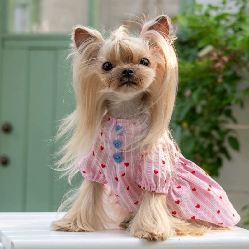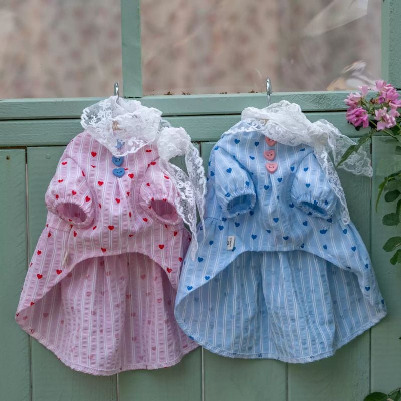 【予約】ハート柄ブラウスワンピース 犬服 01145