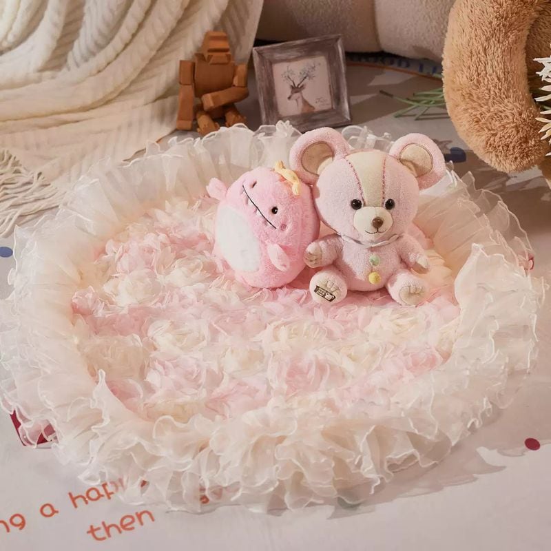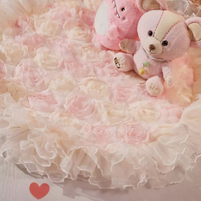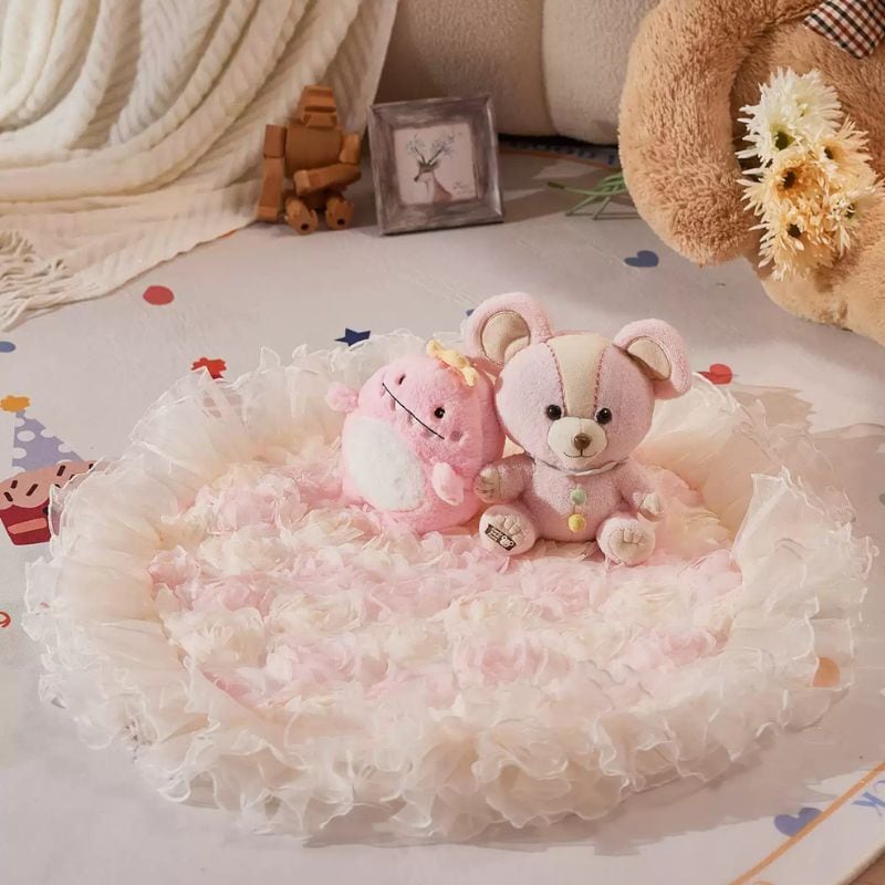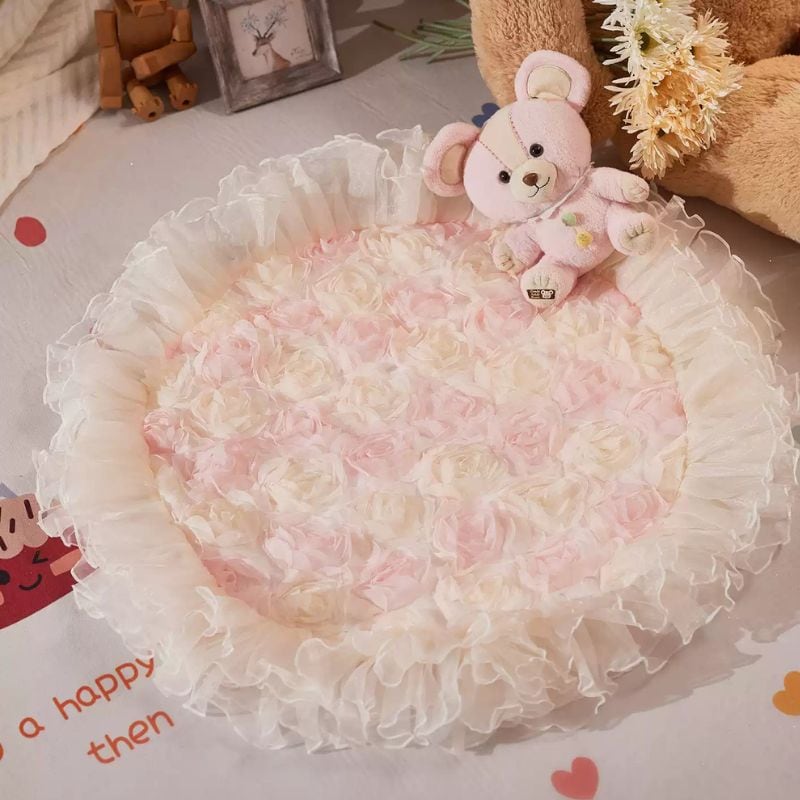 ペット用ホワイトピンクのサークルカフェマット 01158