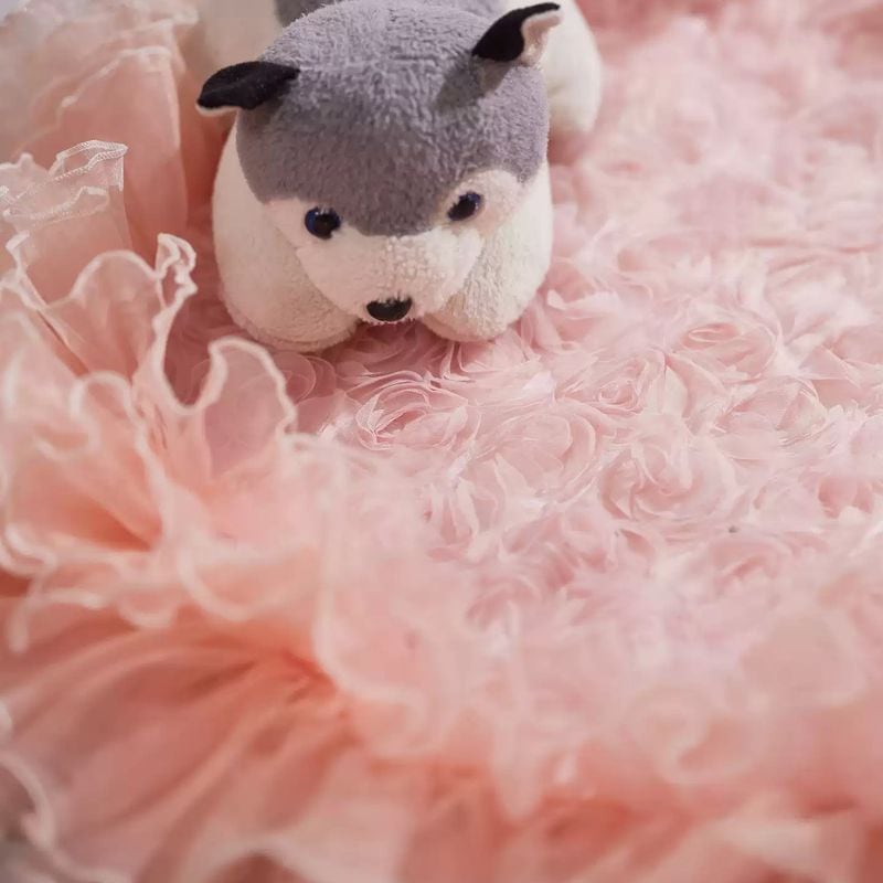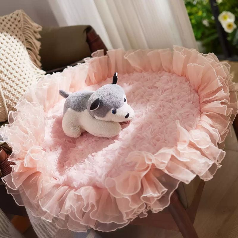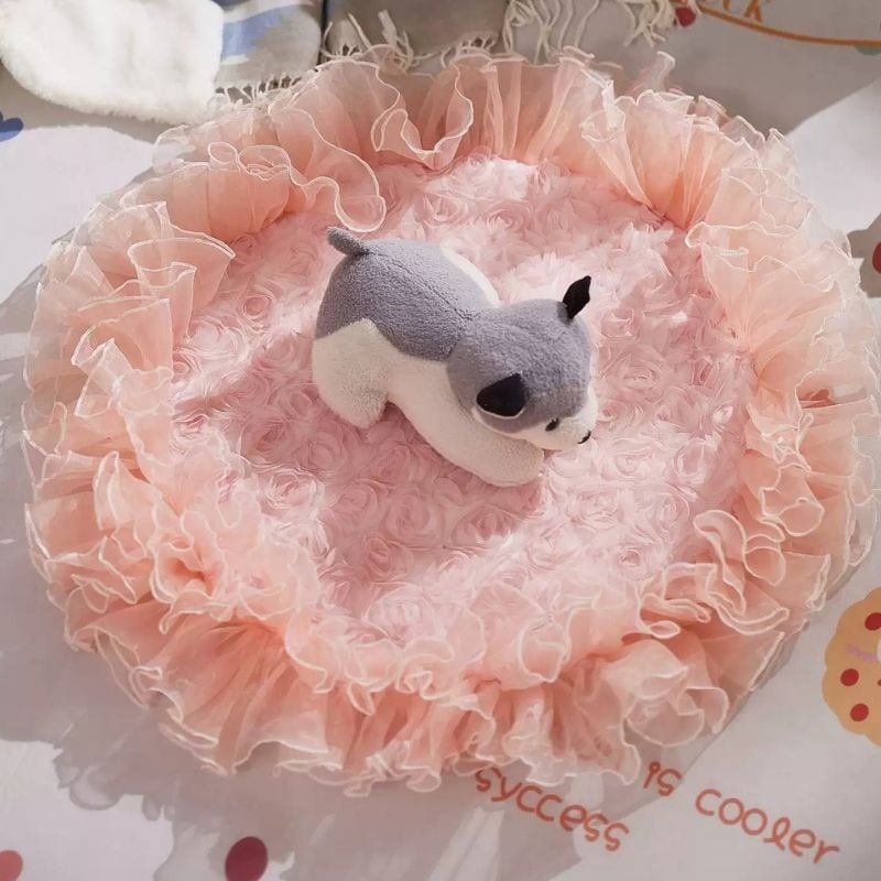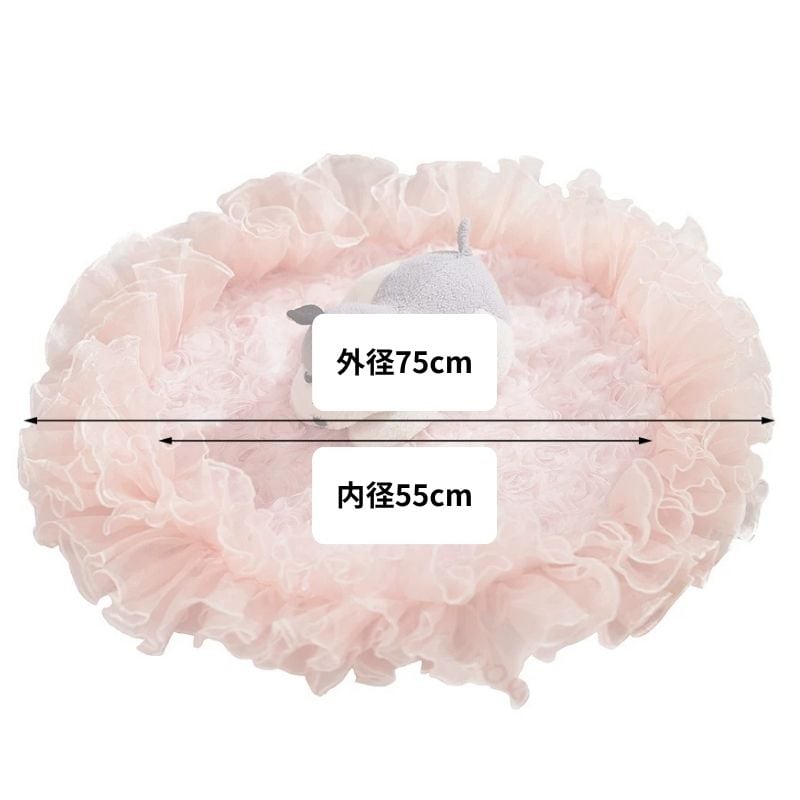ペット用ホワイトピンクのサークルカフェマット 01155